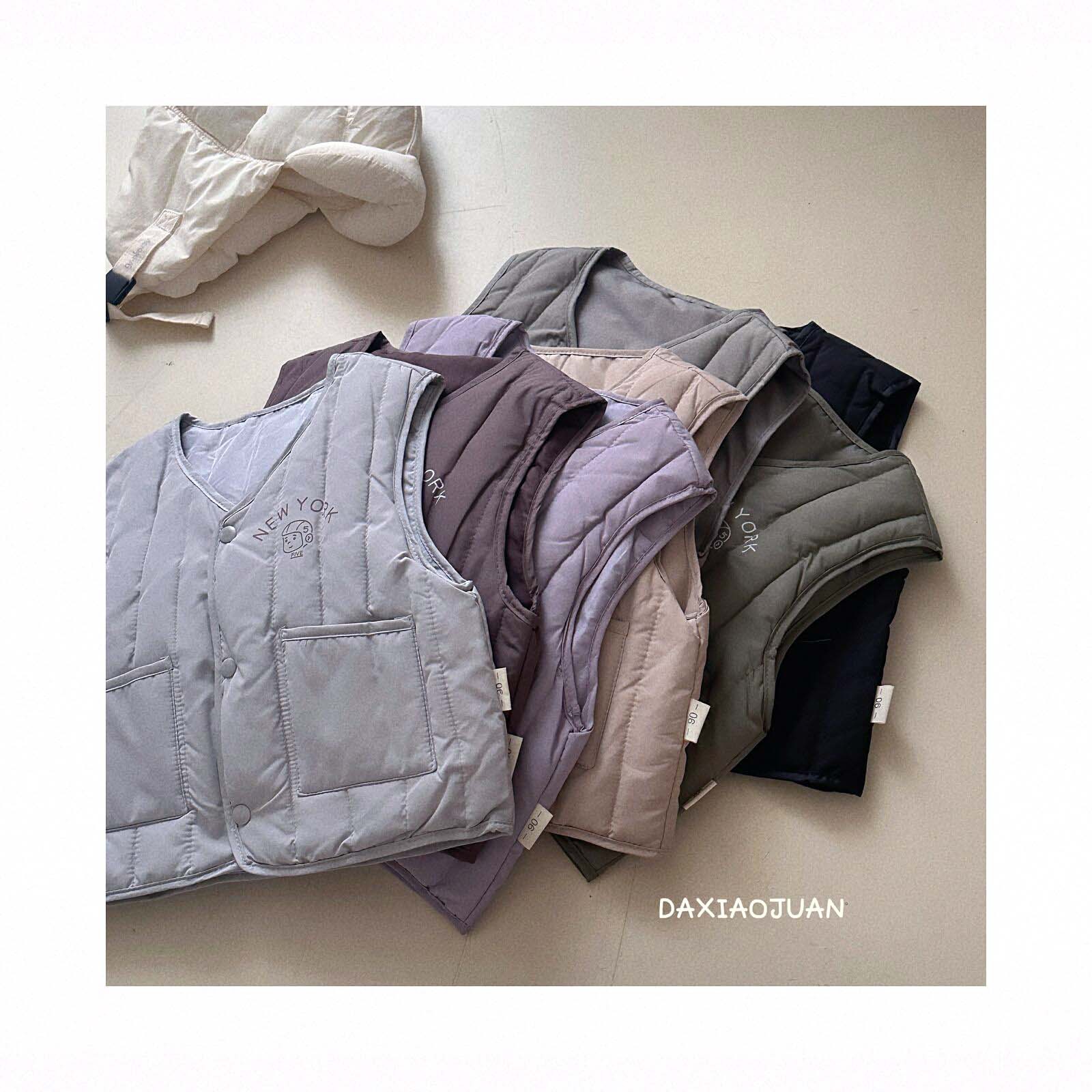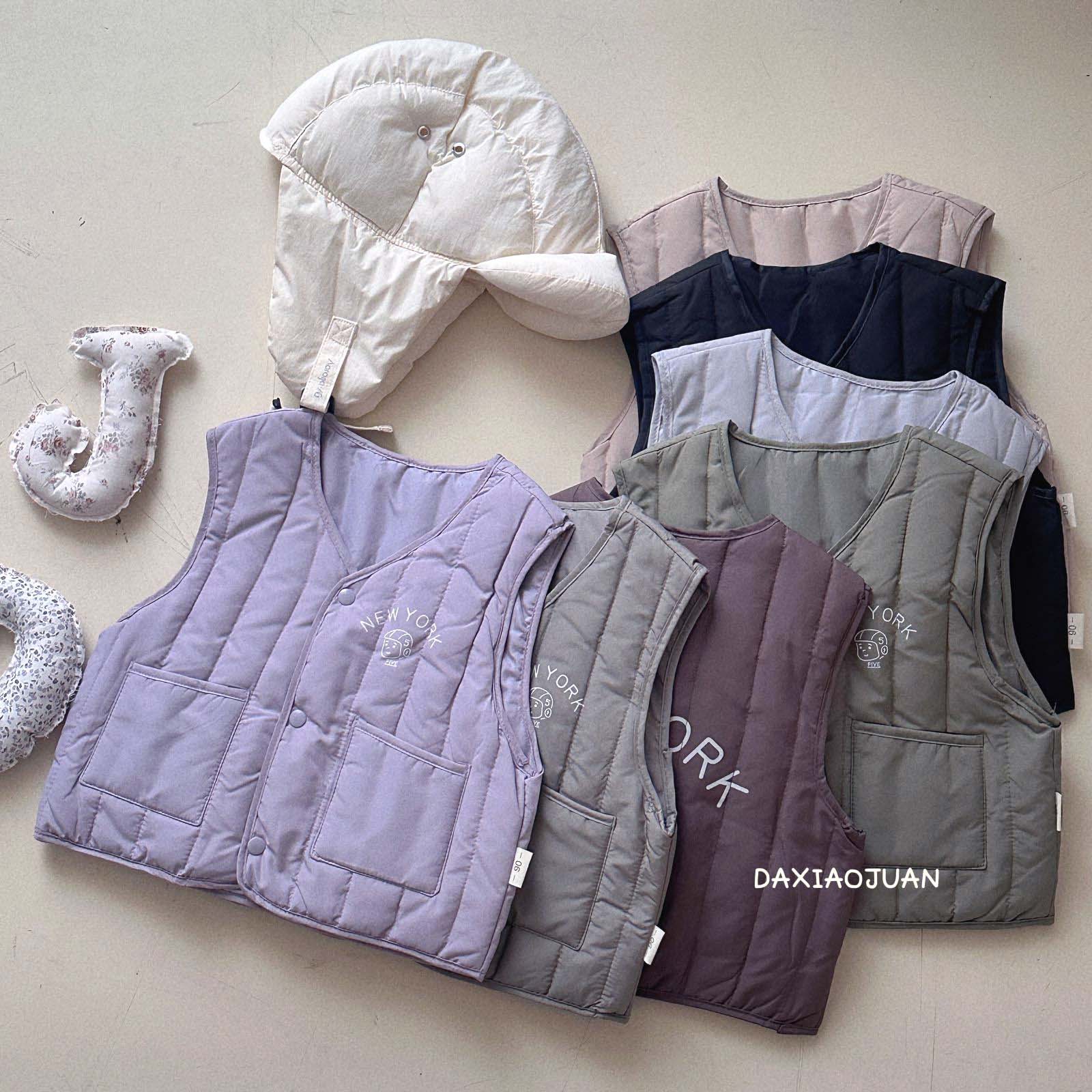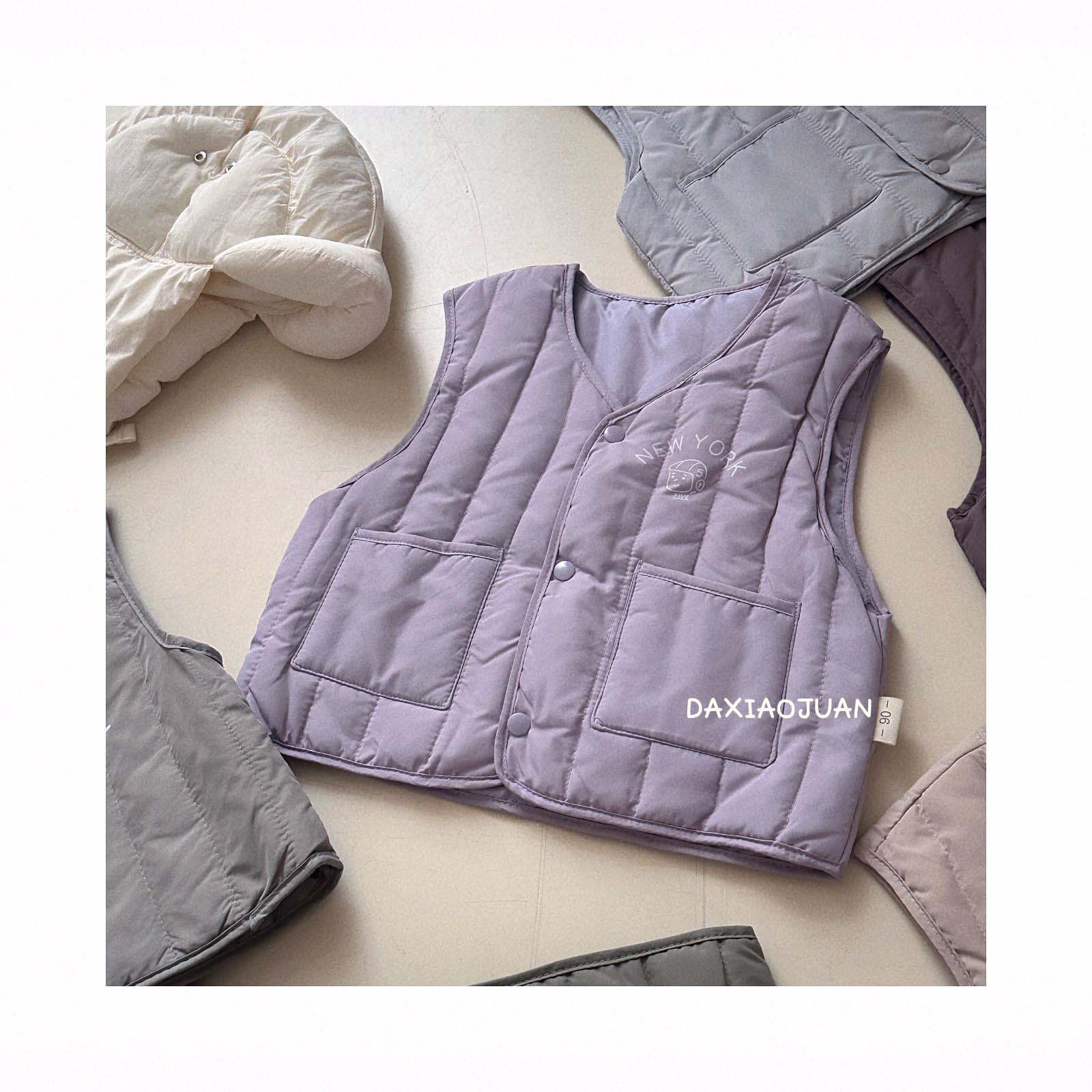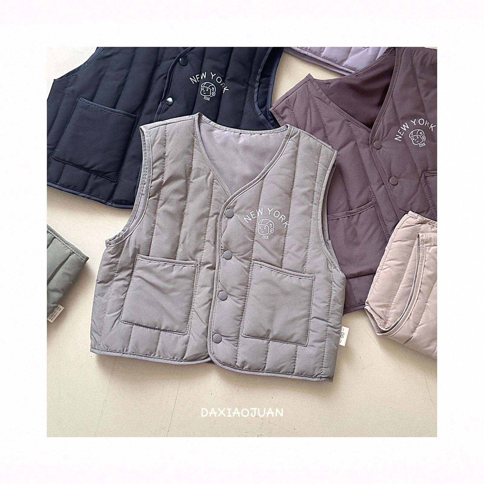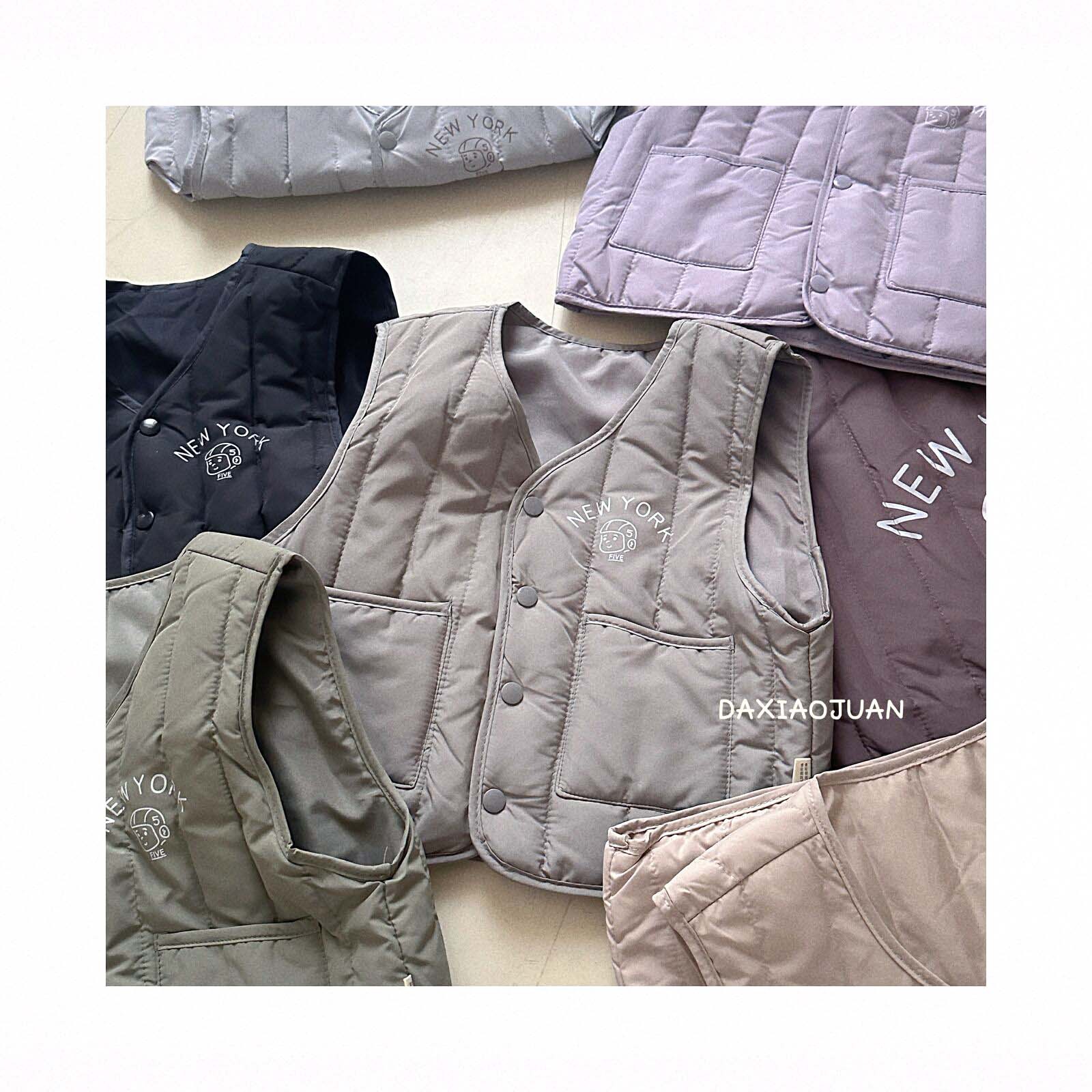 어린이용 다운 조끼, 남아 여아 겨울철 필수 보온 조끼, 단색 세로 줄무늬, 중소형 어린이용, 외투로도 착용 가능