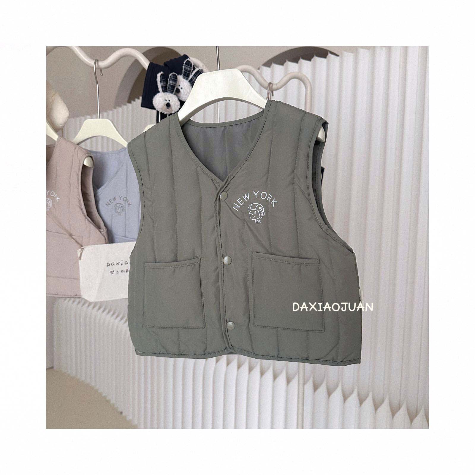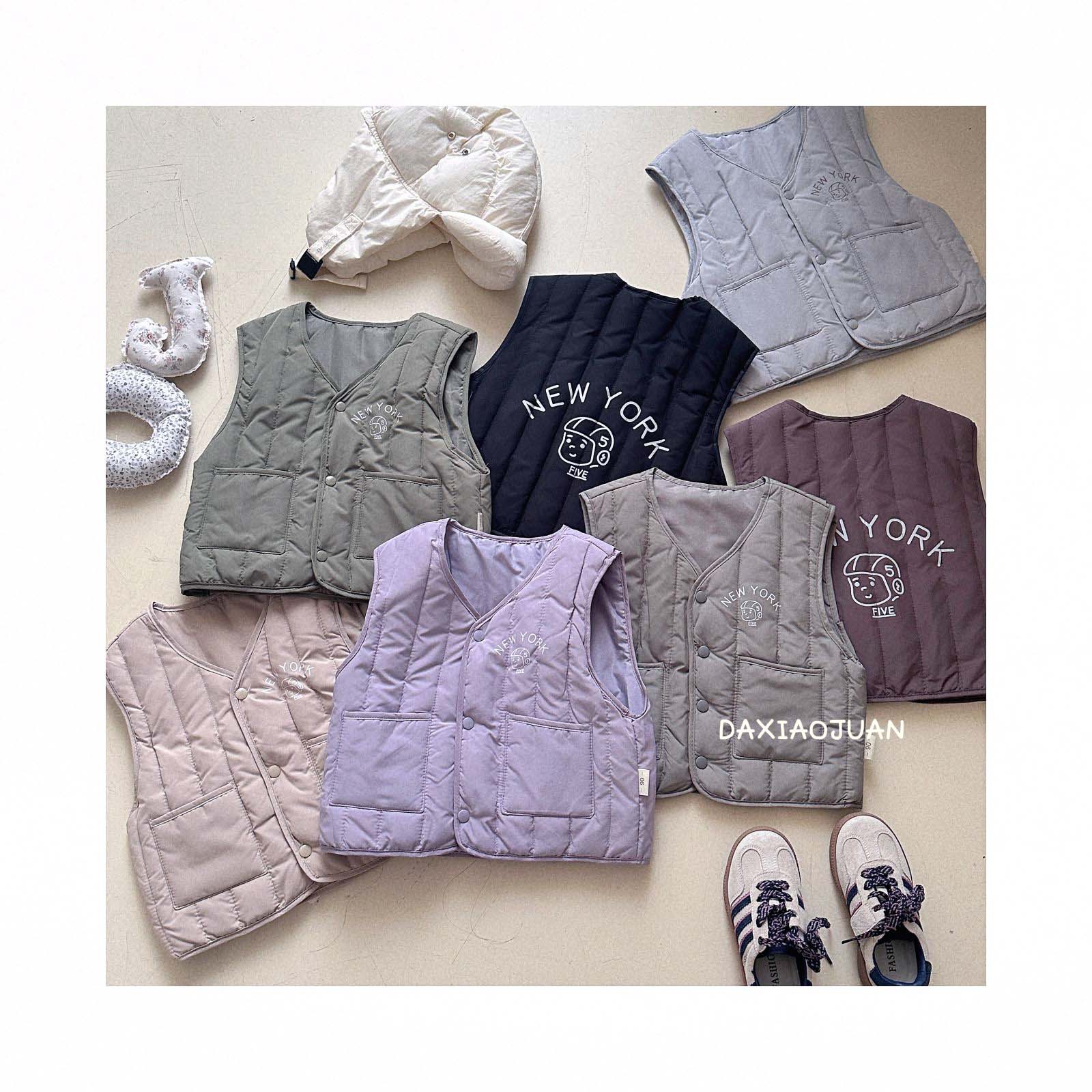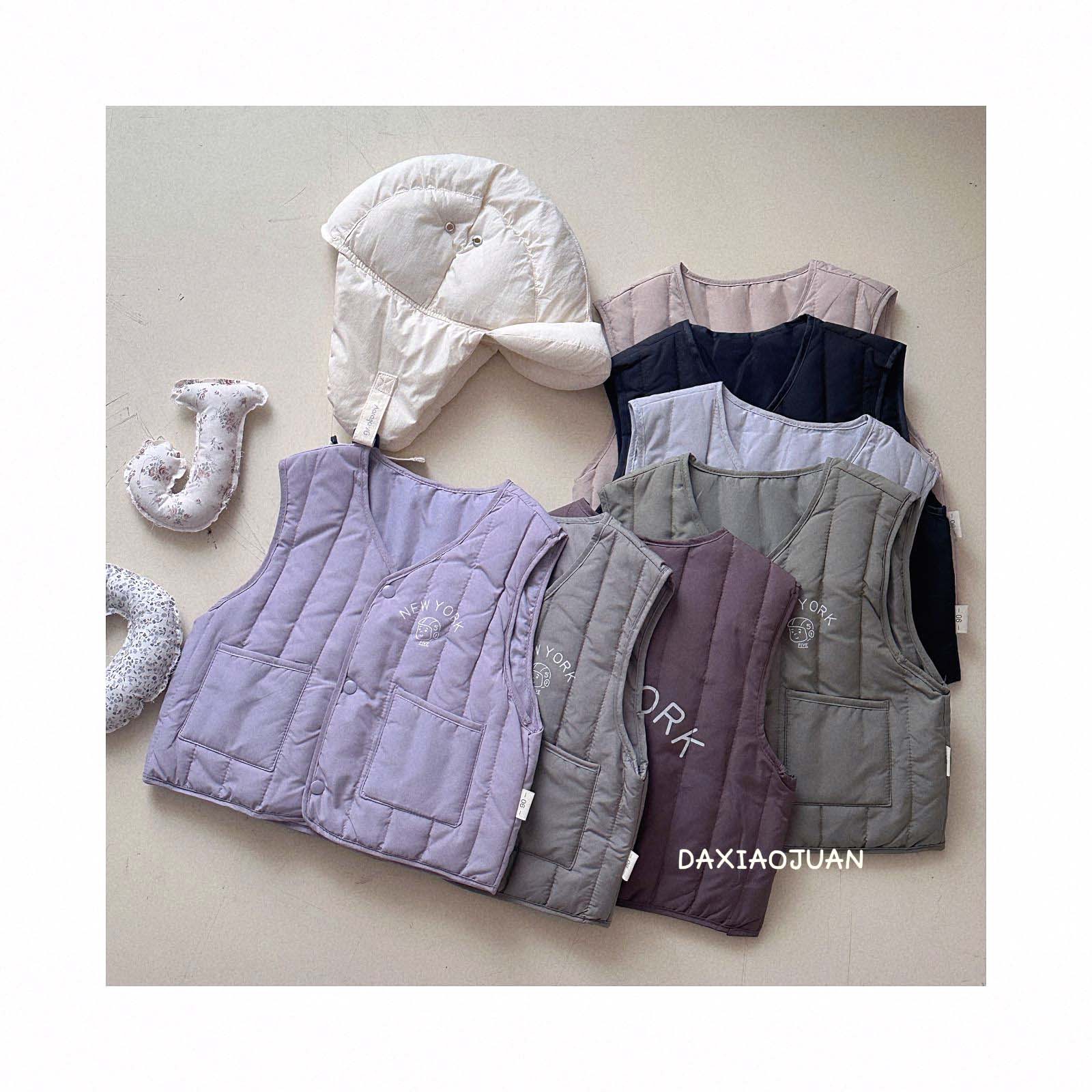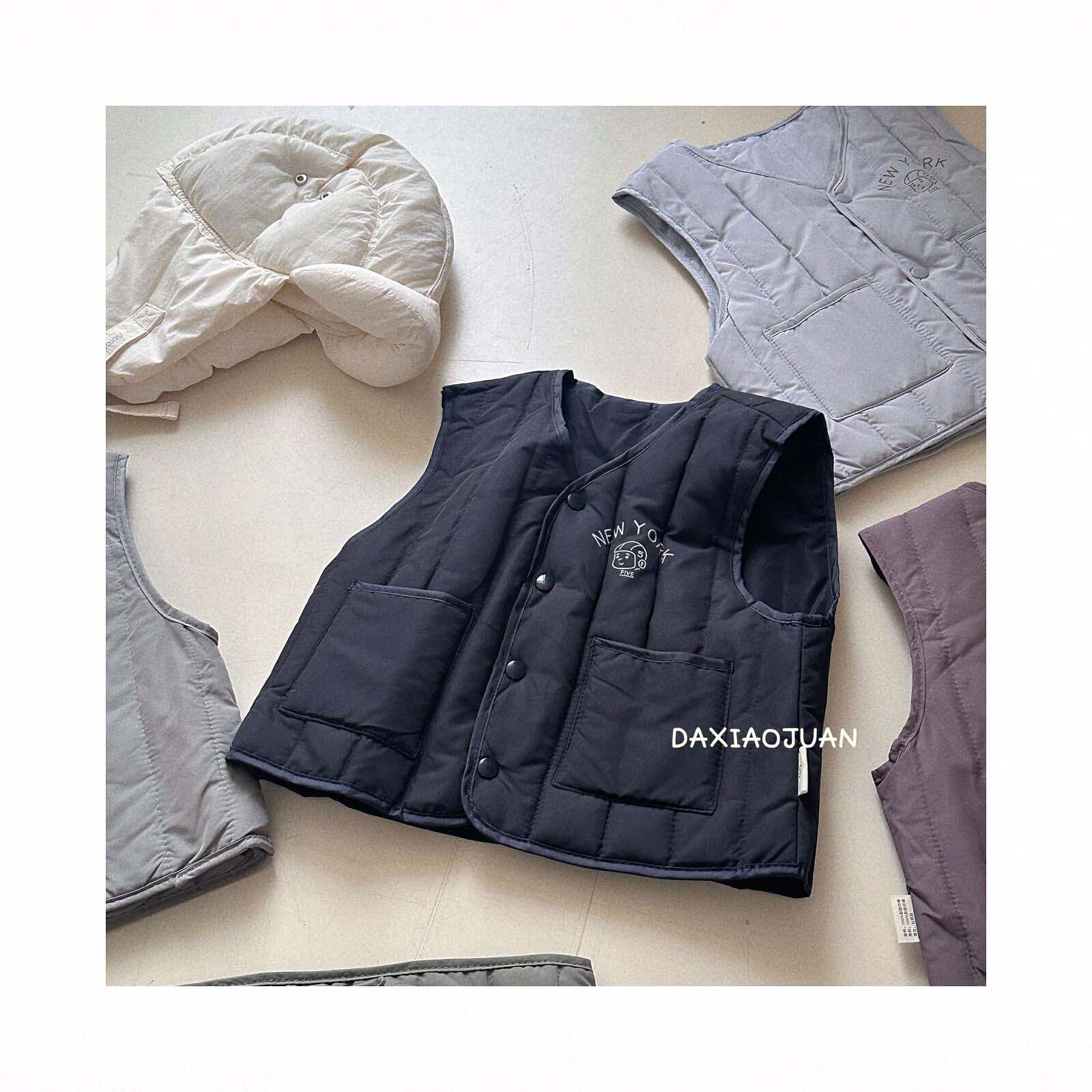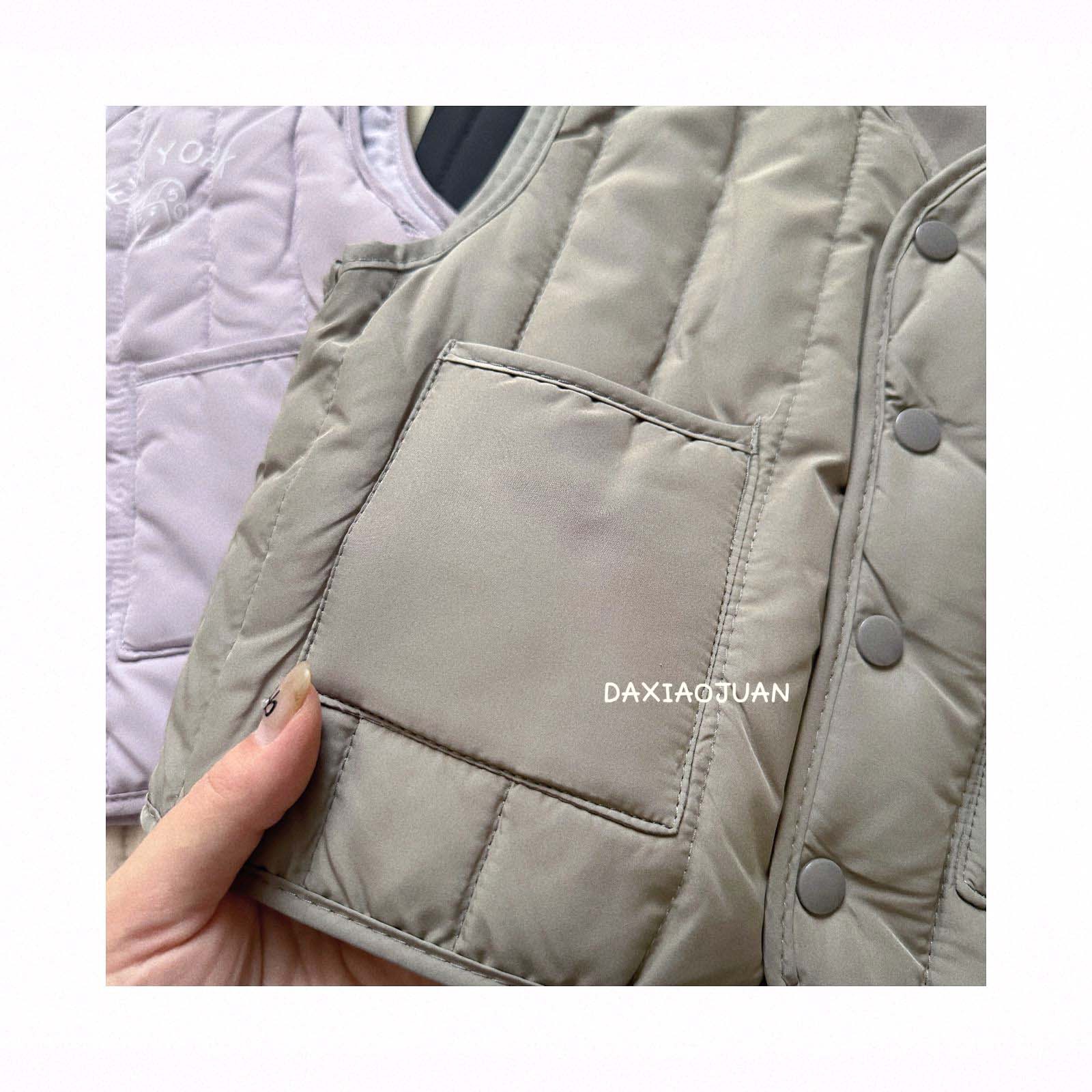 어린이용 다운 조끼, 남아 여아 겨울철 필수 보온 조끼, 단색 세로 줄무늬, 중소형 어린이용, 외투로도 착용 가능