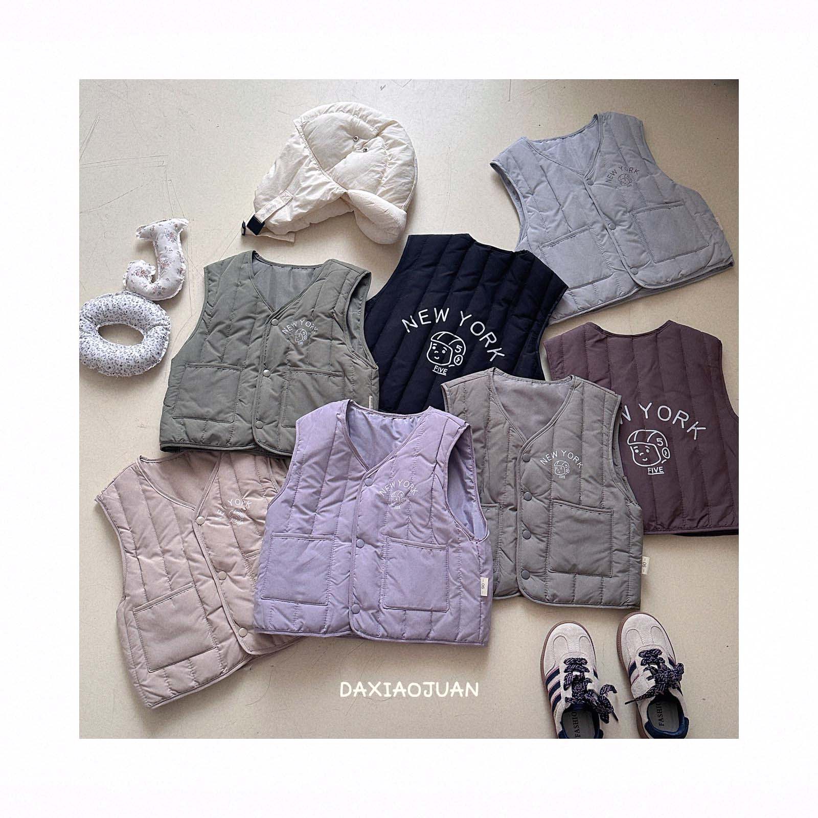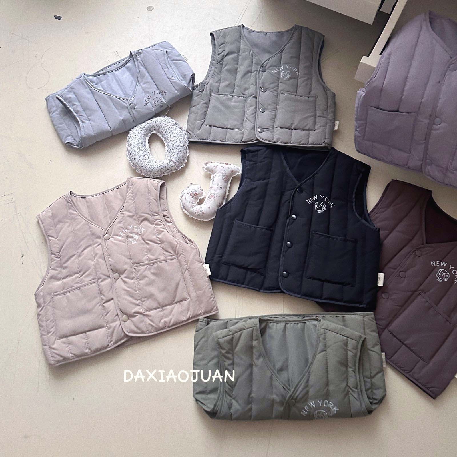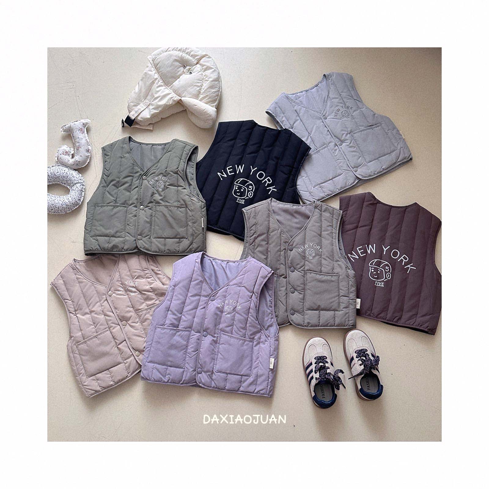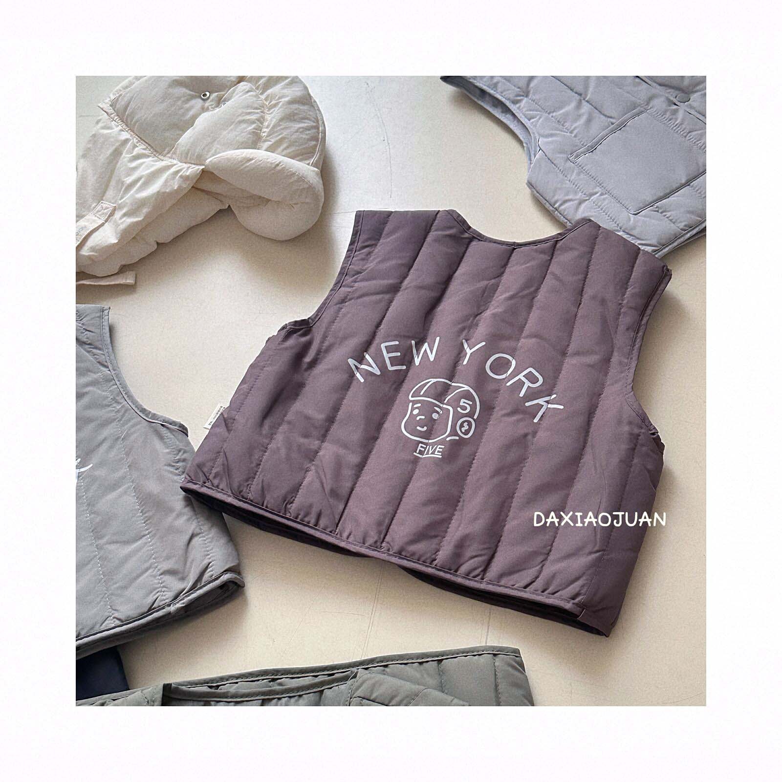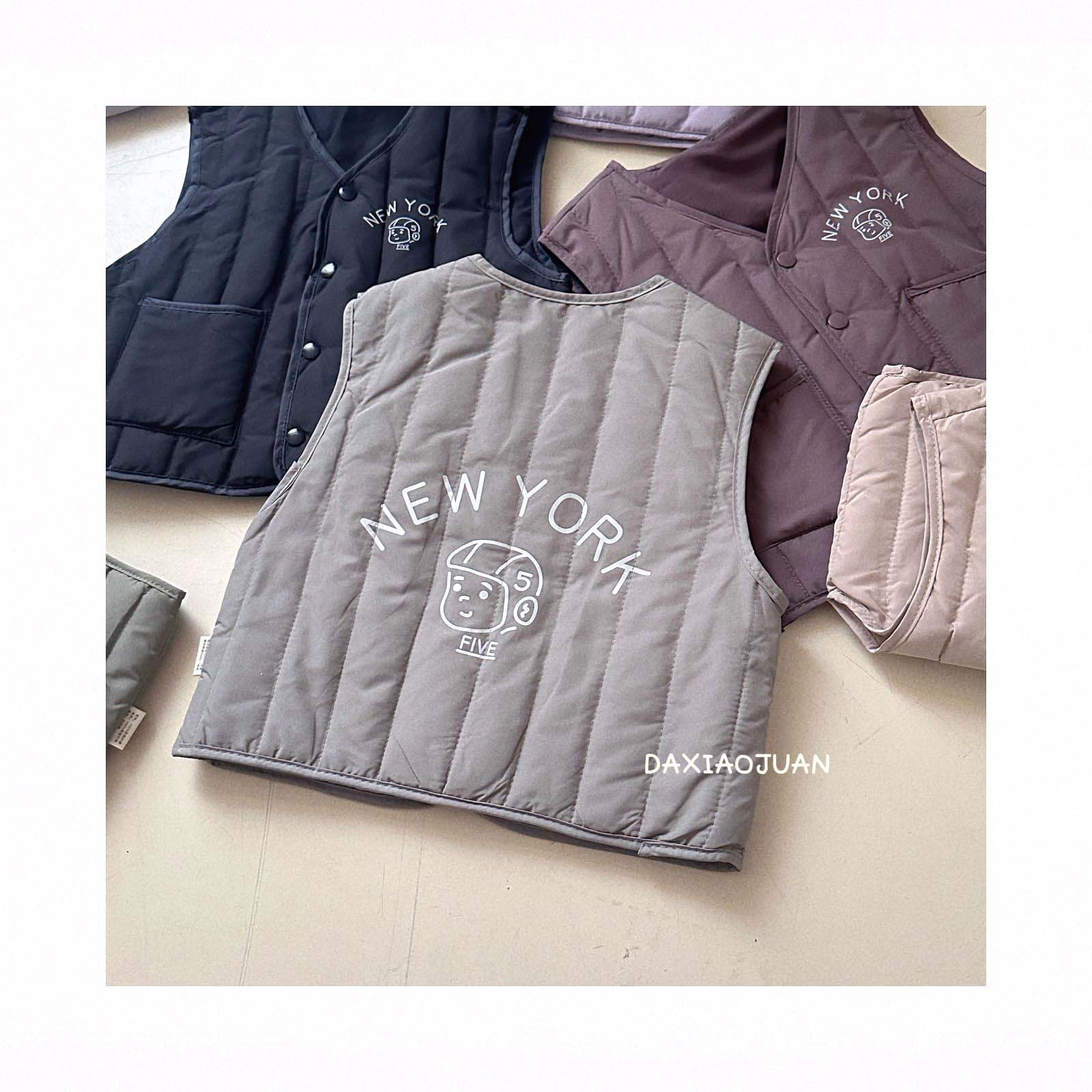 어린이용 다운 조끼, 남아 여아 겨울철 필수 보온 조끼, 단색 세로 줄무늬, 중소형 어린이용, 외투로도 착용 가능