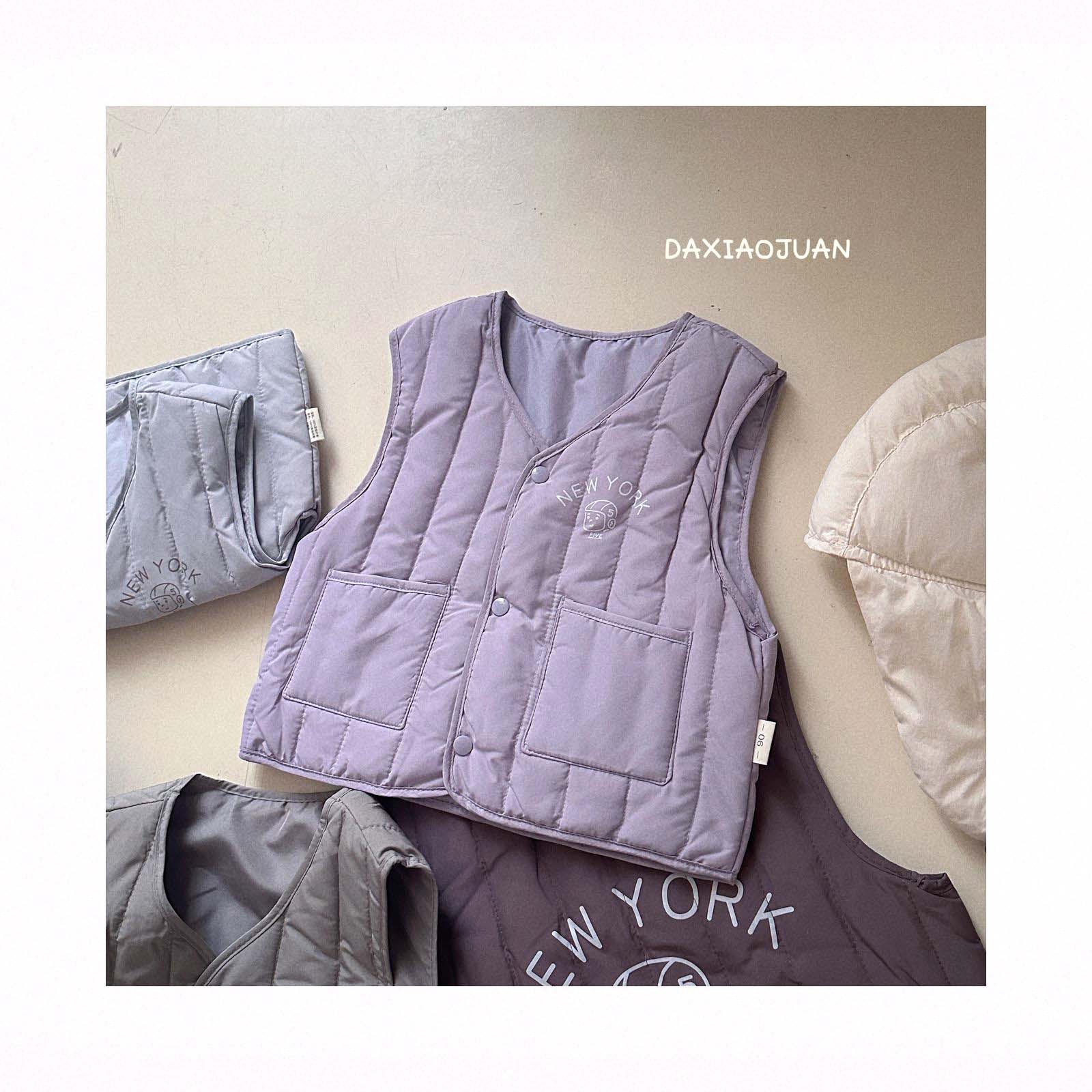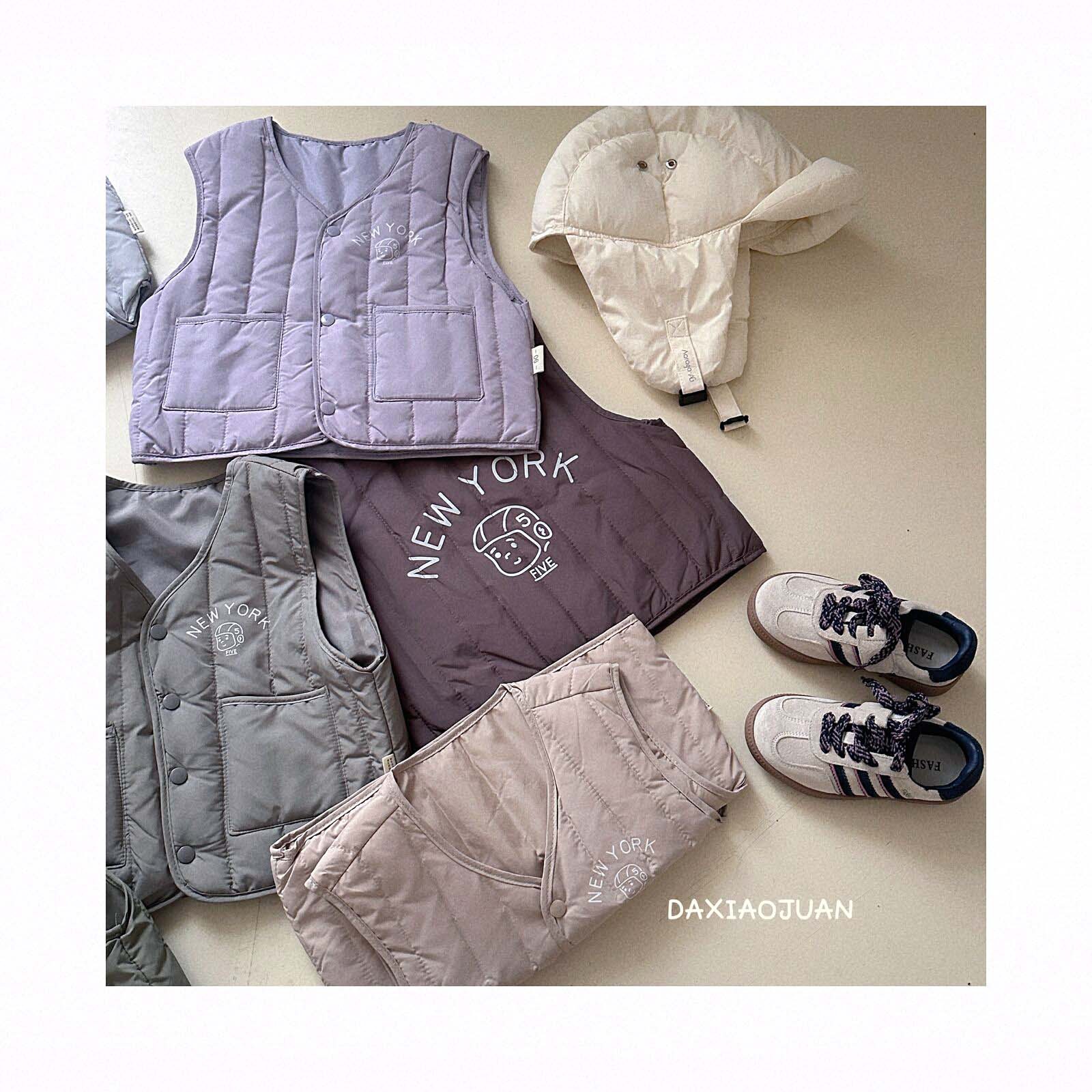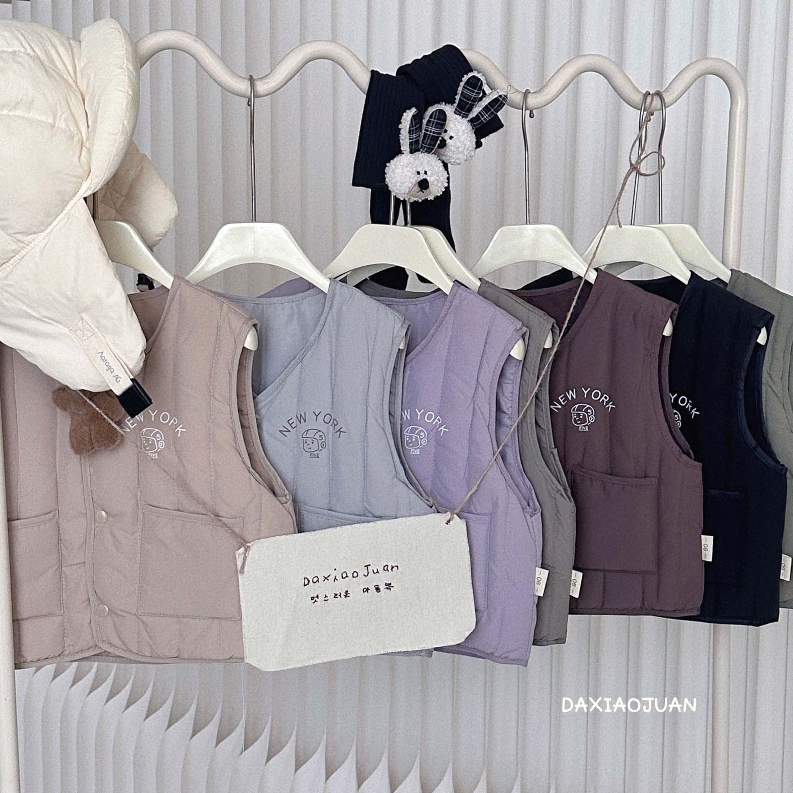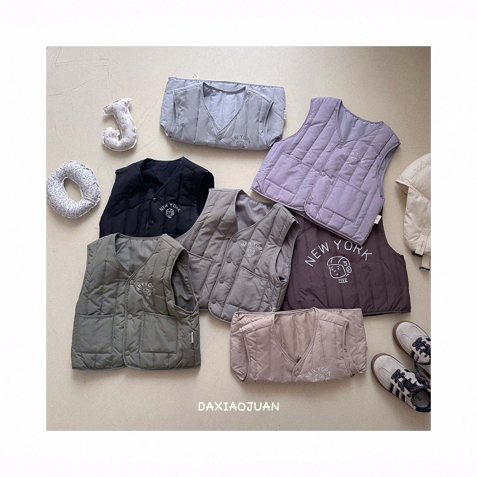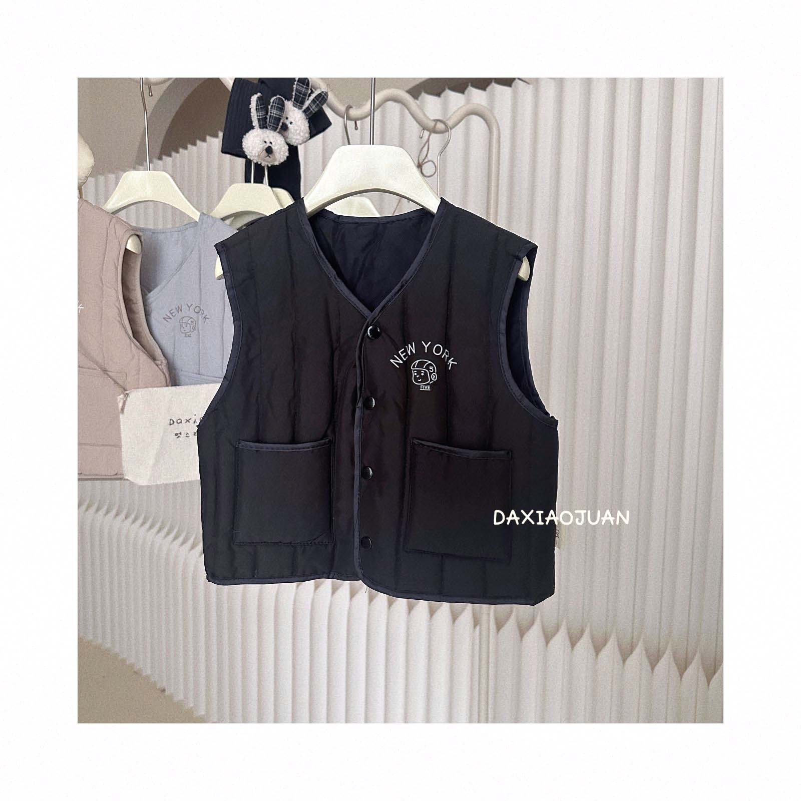 어린이용 다운 조끼, 남아 여아 겨울철 필수 보온 조끼, 단색 세로 줄무늬, 중소형 어린이용, 외투로도 착용 가능