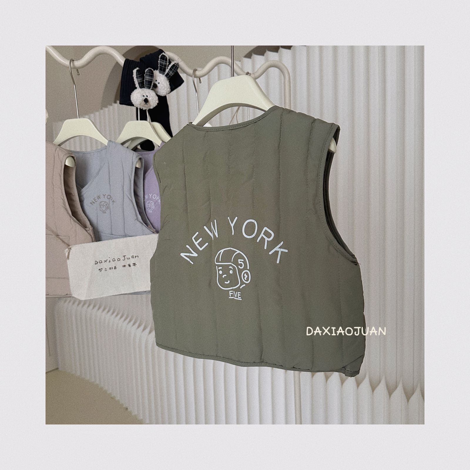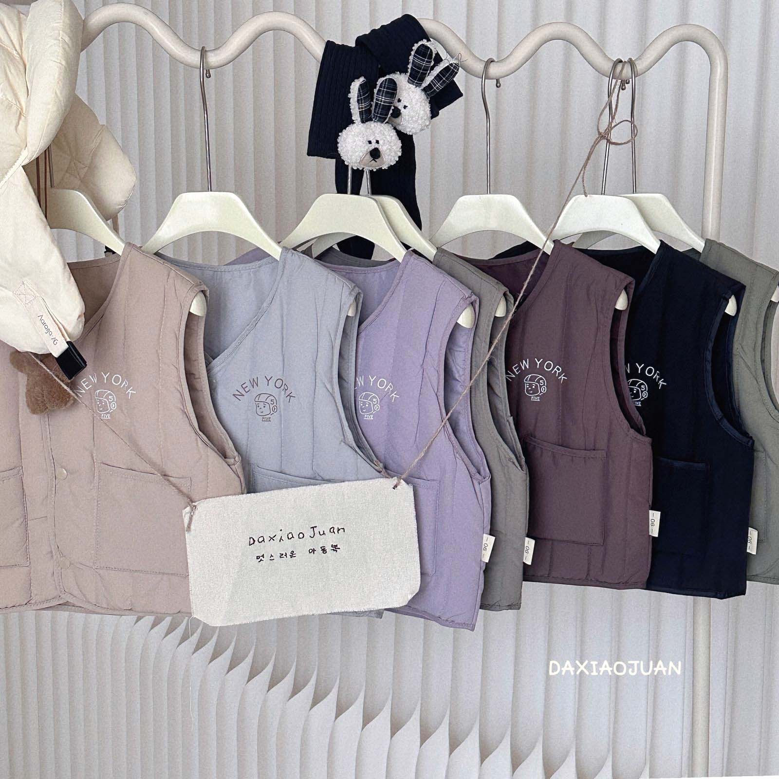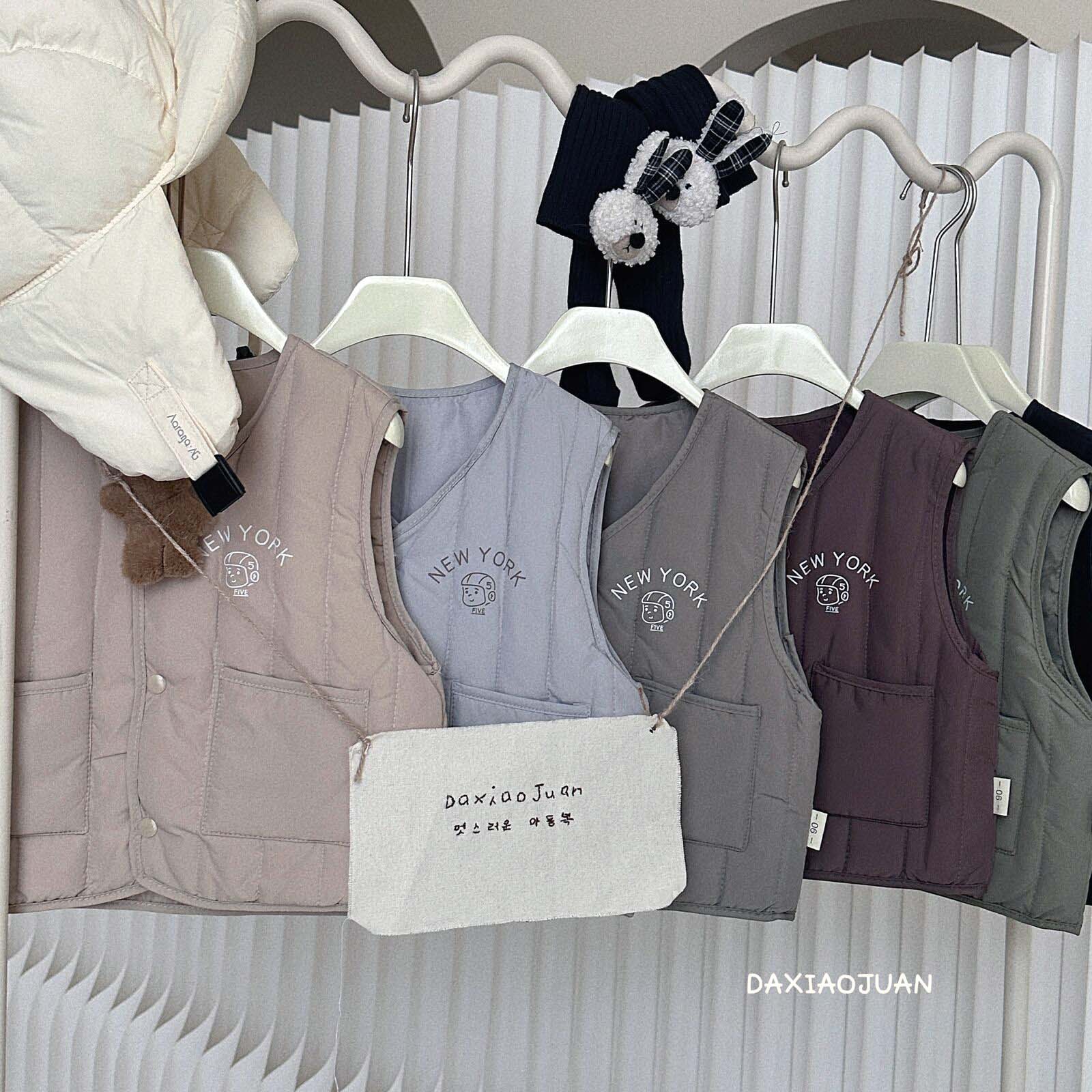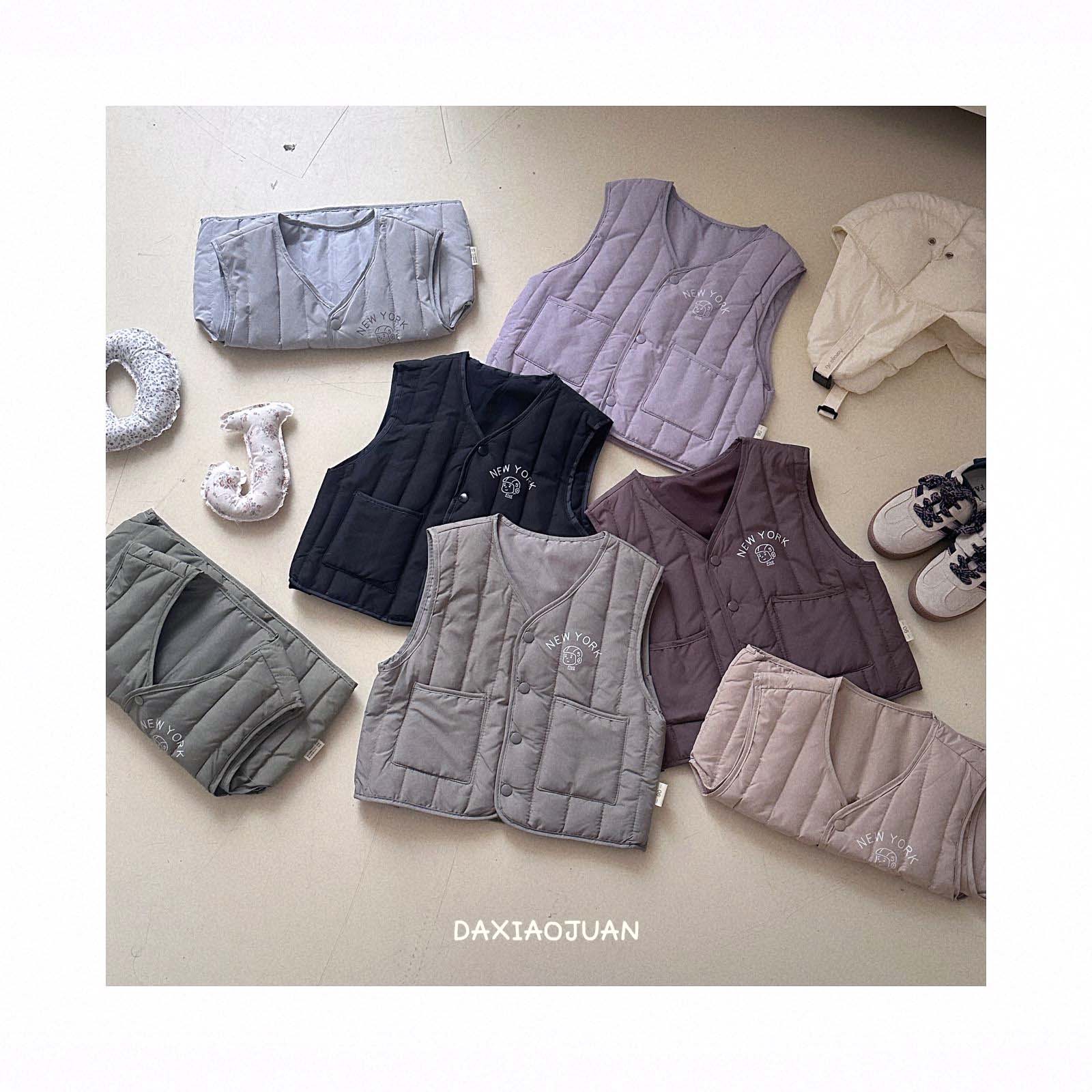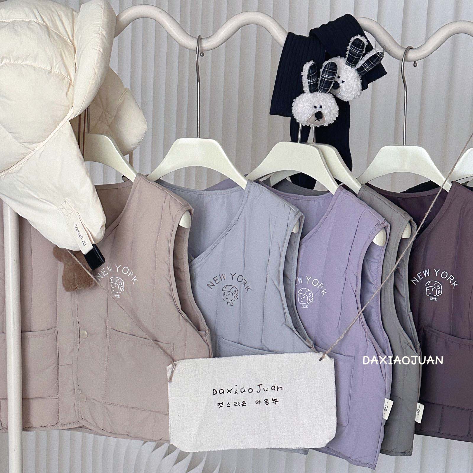 어린이용 다운 조끼, 남아 여아 겨울철 필수 보온 조끼, 단색 세로 줄무늬, 중소형 어린이용, 외투로도 착용 가능