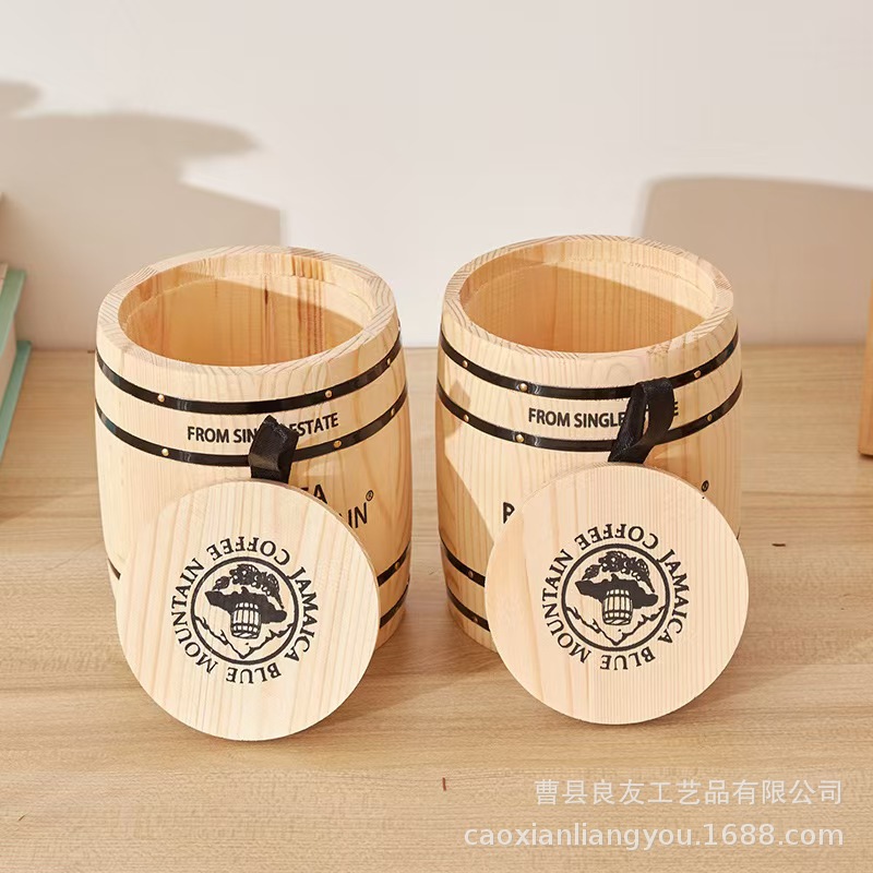 국경 간 커피 콩 나무 저장 양동이 가정용 창조적 인 주방 조미료 저장 항아리 나무 차 벌크 저장 상자
