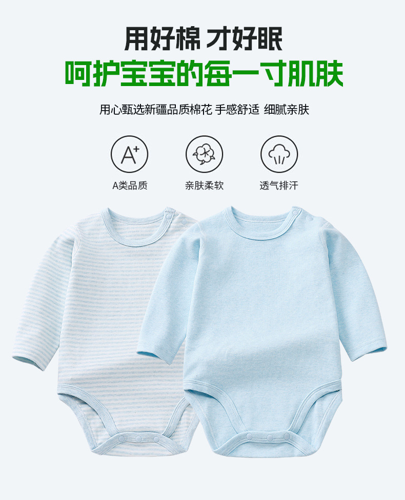 [천연색면] 아기 긴팔 사계절 스타일 신생아 속옷 아기 A형 땀흡수 및 투과성