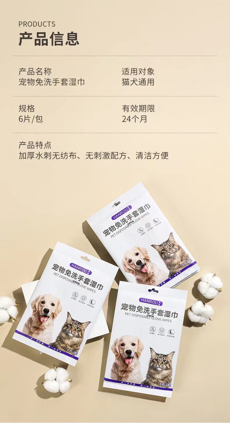 애완 동물 워시 프리 장갑 개 목욕 데오도란트 일회용 고양이 청소 드라이 클리닝 애완 동물 용품 6 조각 젖은 물티슈