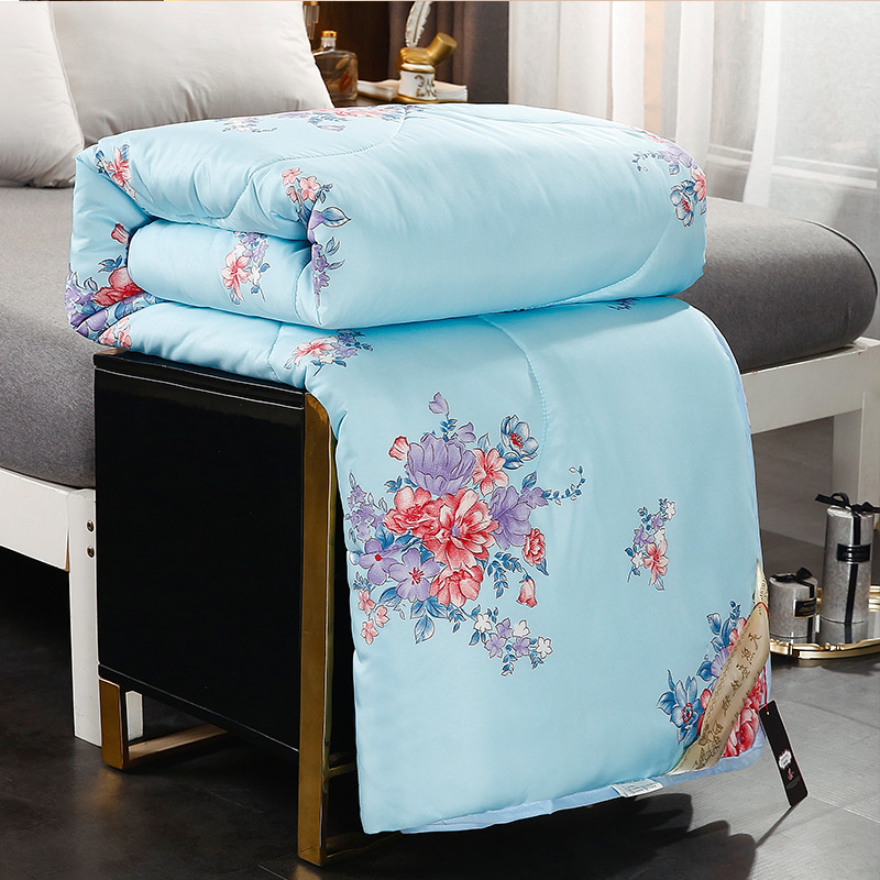 3、本款宝贝面料:珠光浆印花,填充物:仿蚕丝,无论在批发、团购、天猫、淘宝、京东或是其他渠道,都是销量很好的蚕丝被。本店花型较多,尺寸也比较多,适合各个年龄层和消费水平的顾客,所以朋友们不用怕卖不出去。