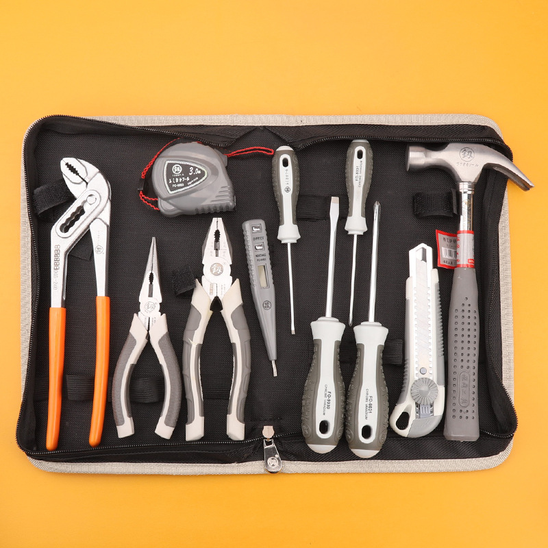 후쿠오카 도구 FO-8201 가정용 유지 보수 도구 조합 세트 도구 저장 가방 12 피스 하드웨어 세트