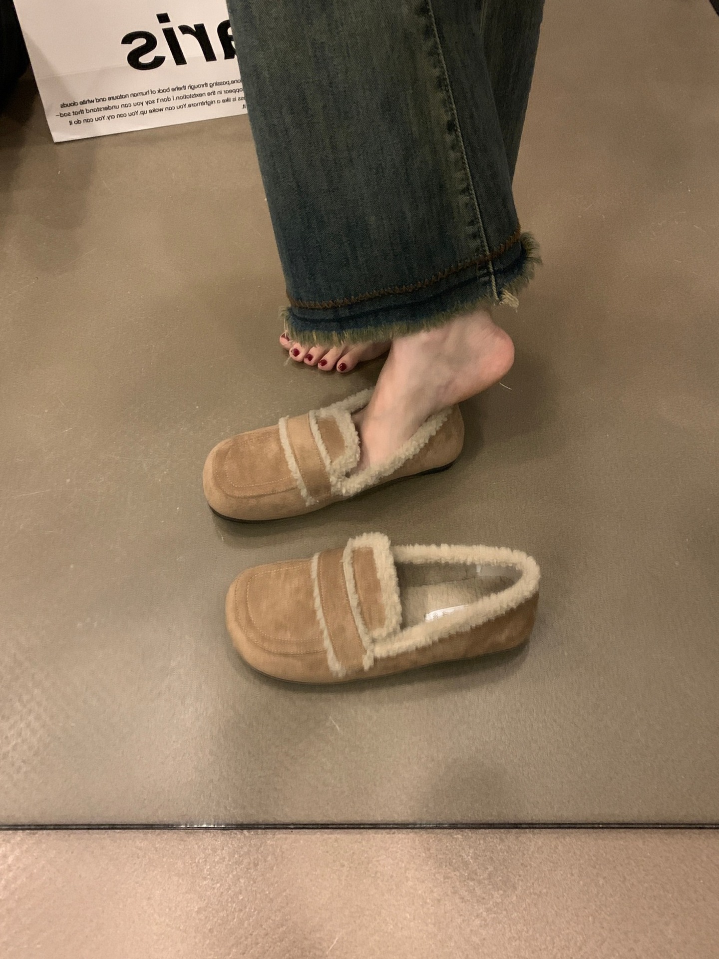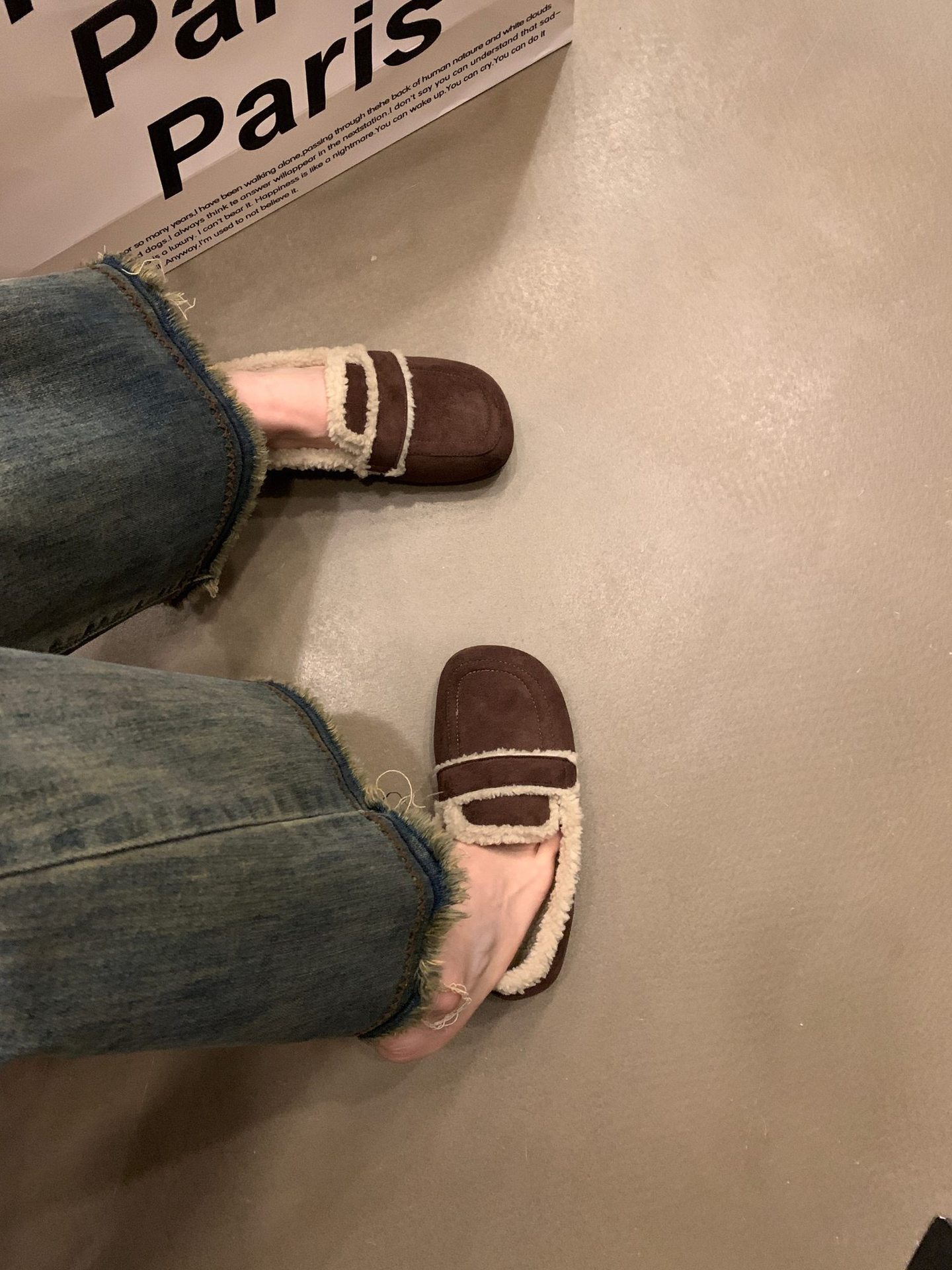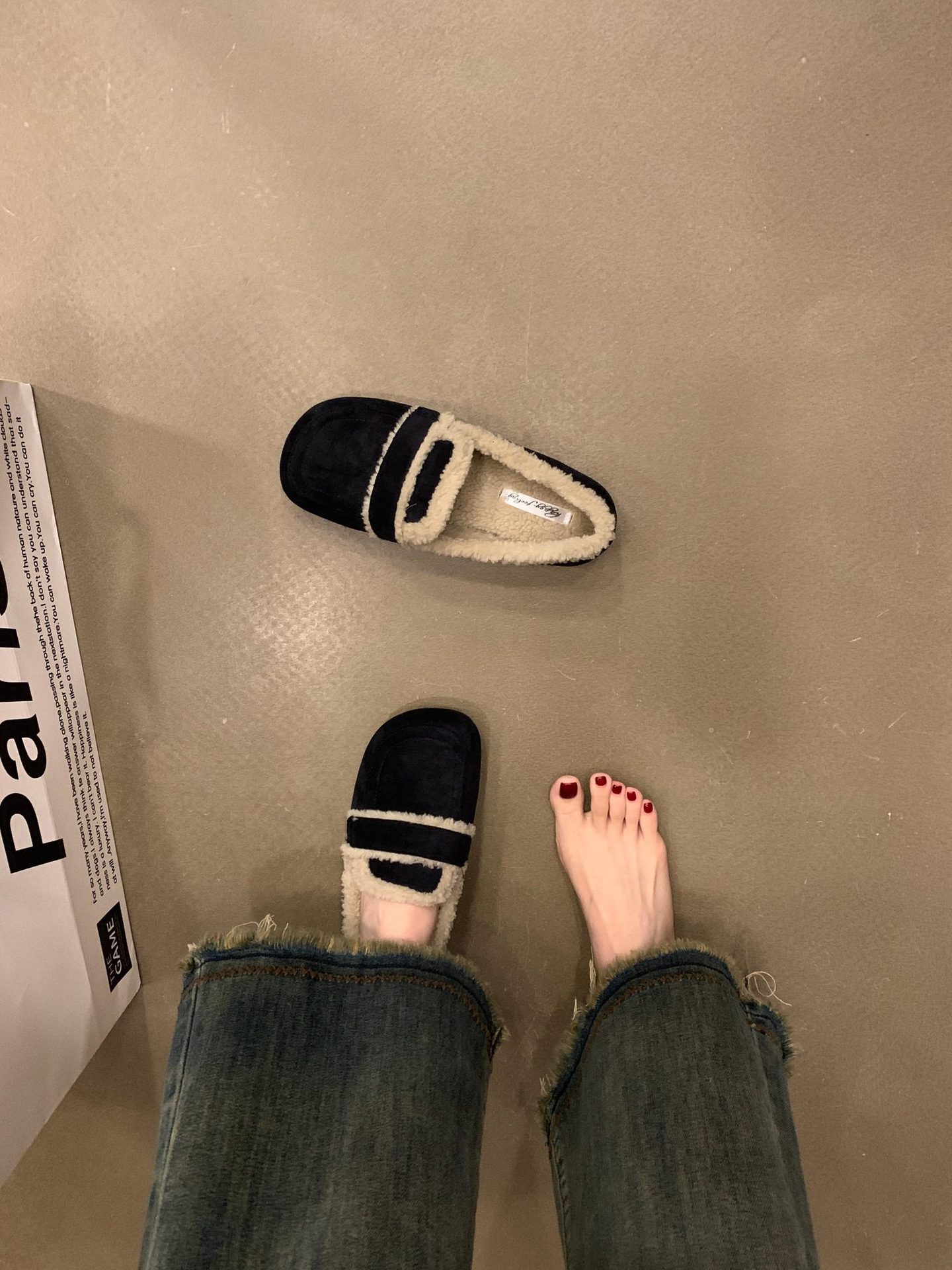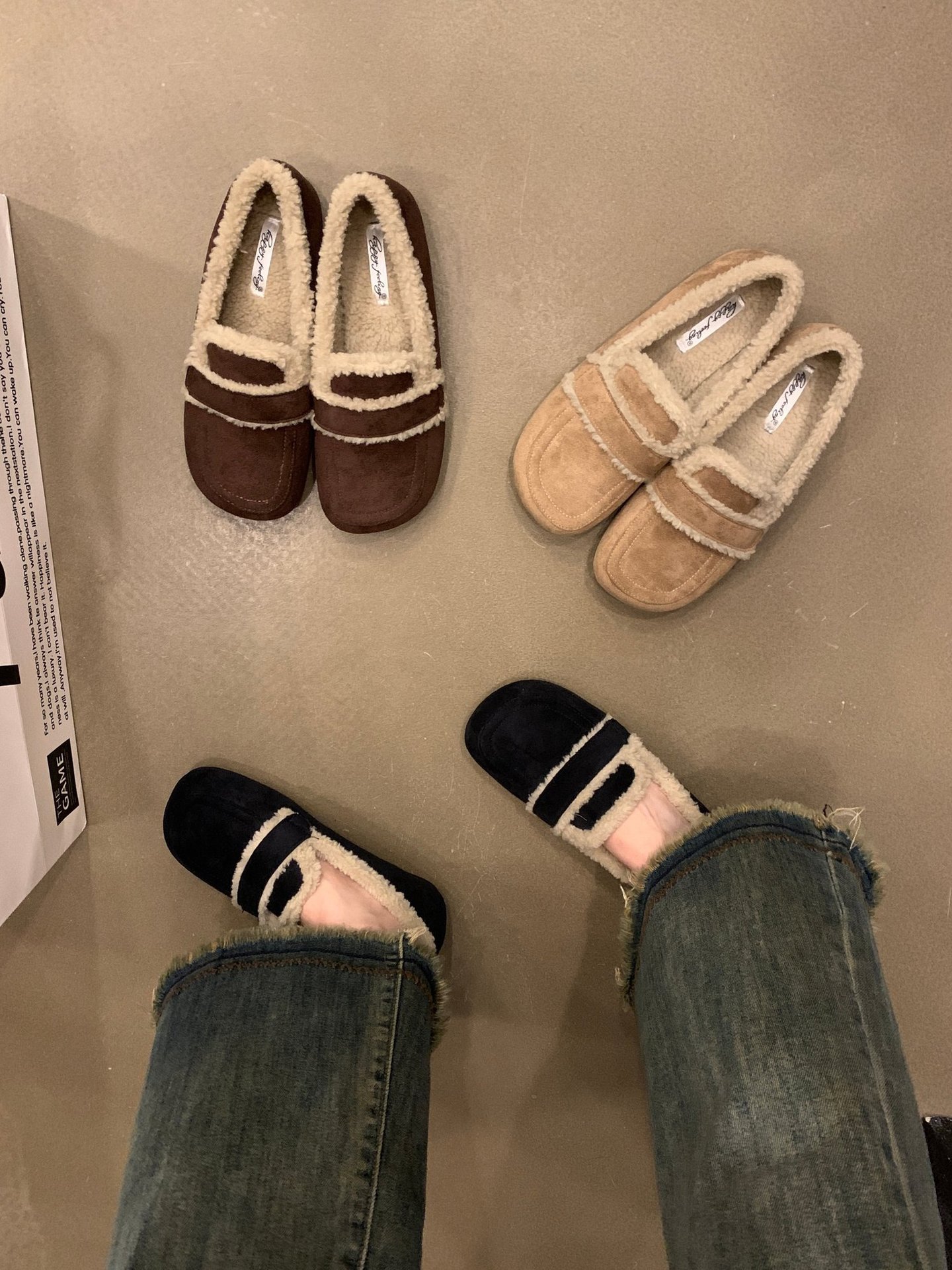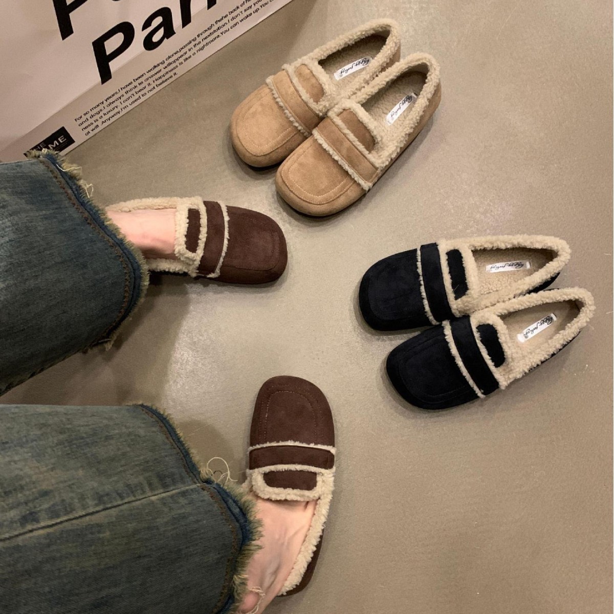 두꺼운 밑창 기모 버켄 스톡 신발 콩 신발 2024 가을 및 겨울 코튼 신발 싱글 레이어 신발 여성 신발 겉옷 마오 마오 신발 스노우 슈즈스토어 가기