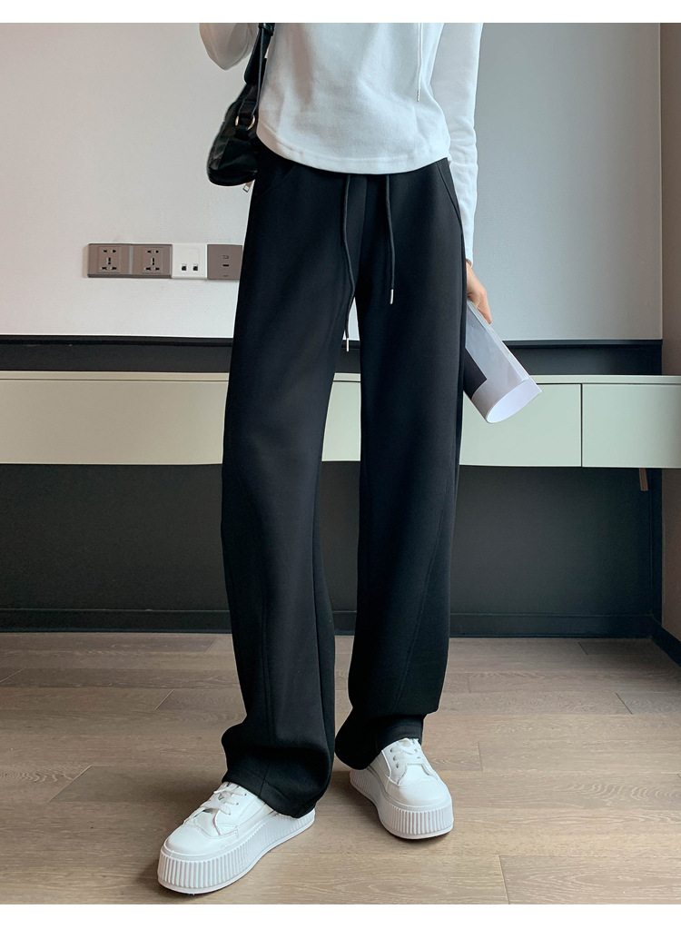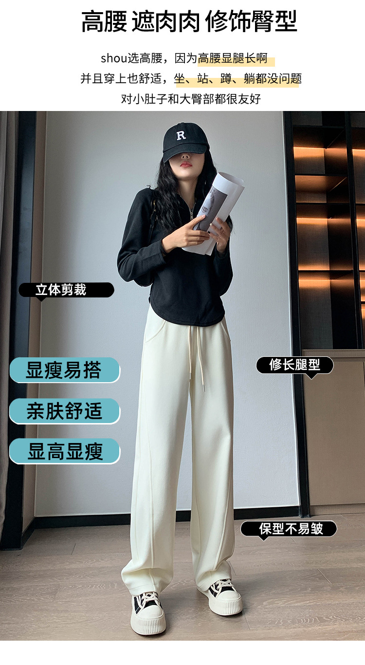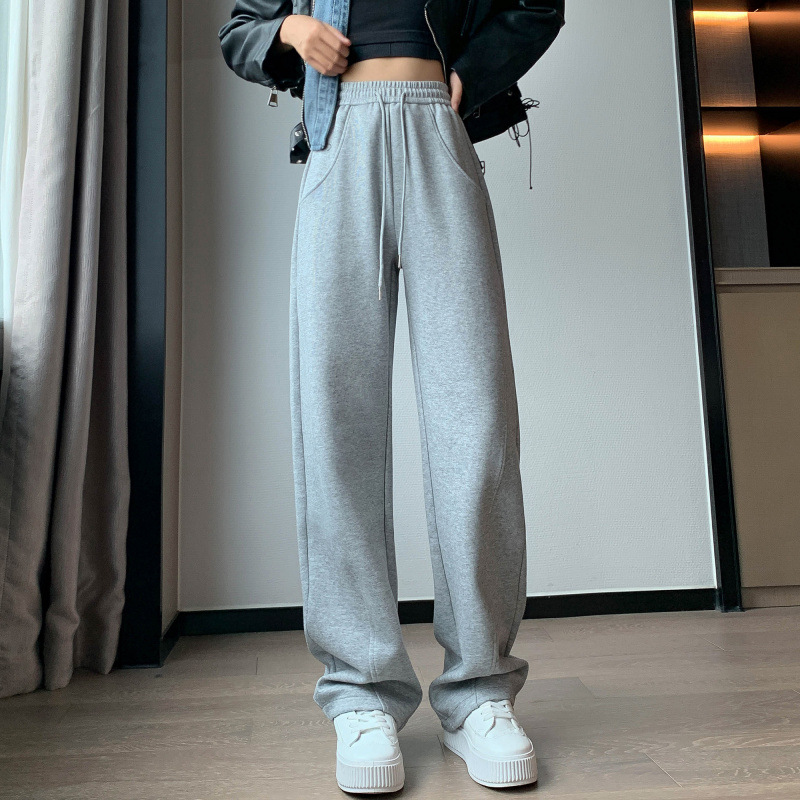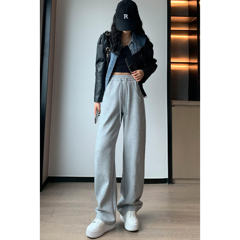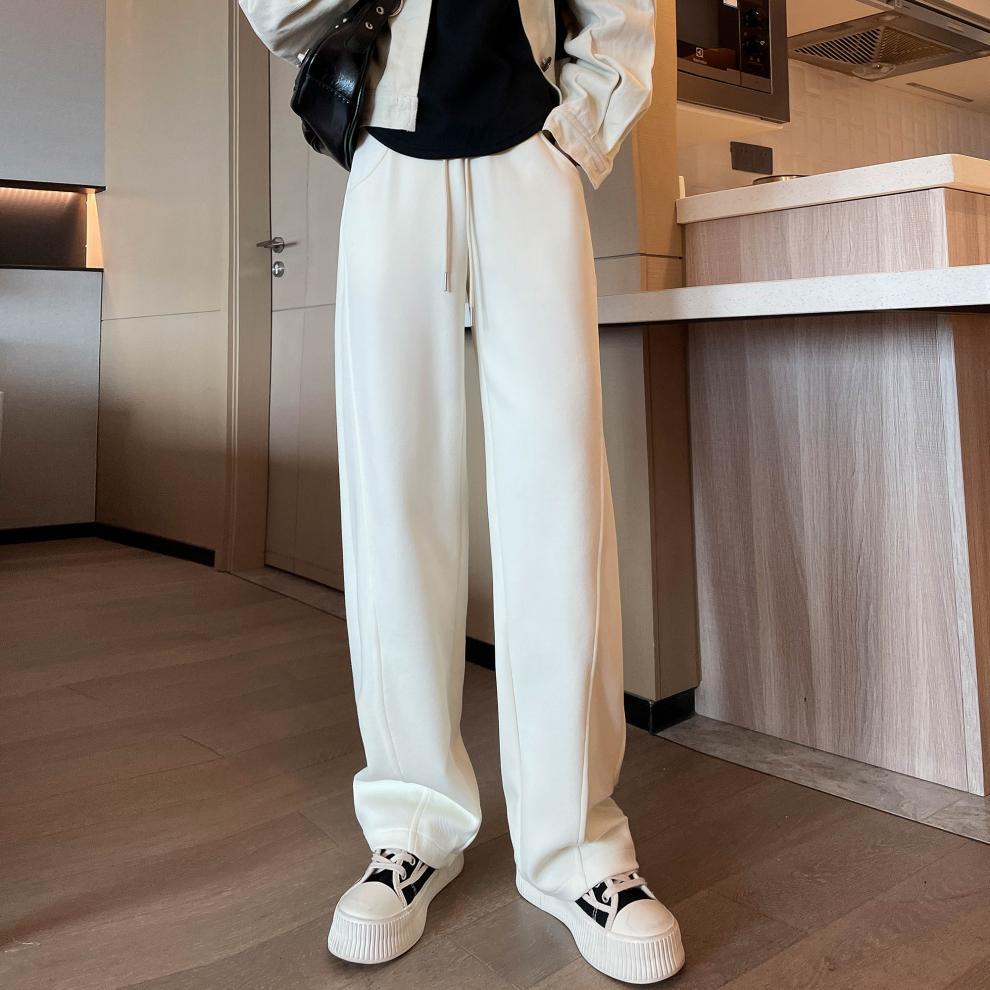 2024 겨울 새로운 와이드 레그 바지 새로운 마체테 바지 투약 느슨한 캐주얼 슬림 룩 여성을위한 올 매치 스트레이트 스포츠 바지