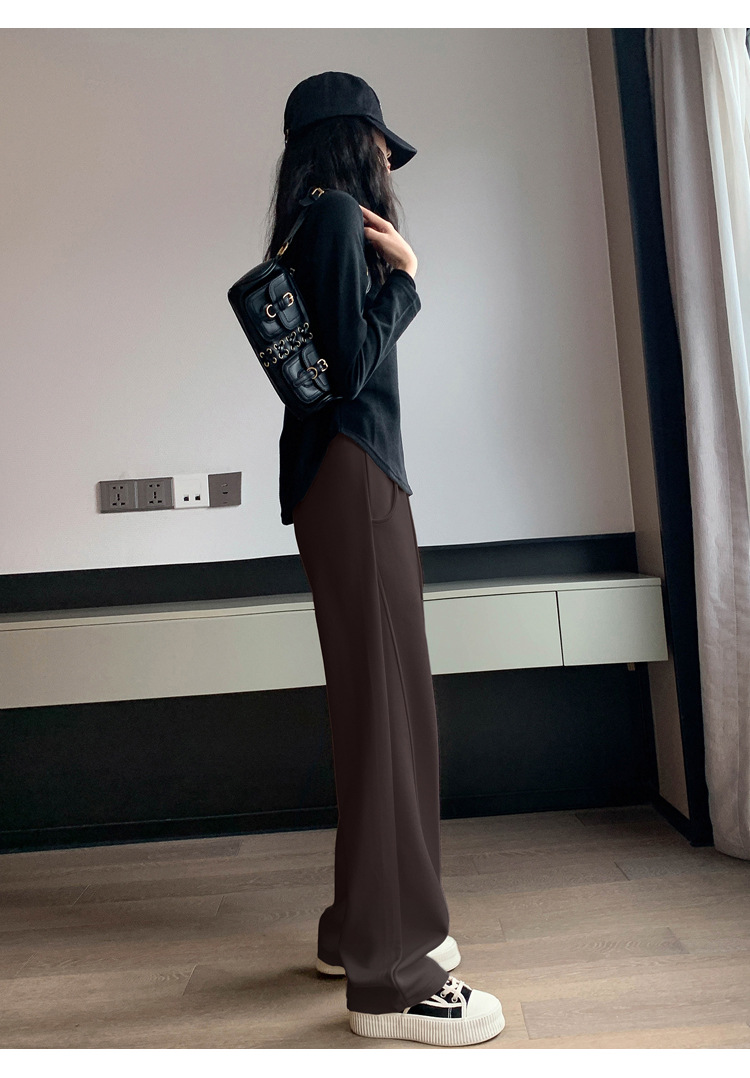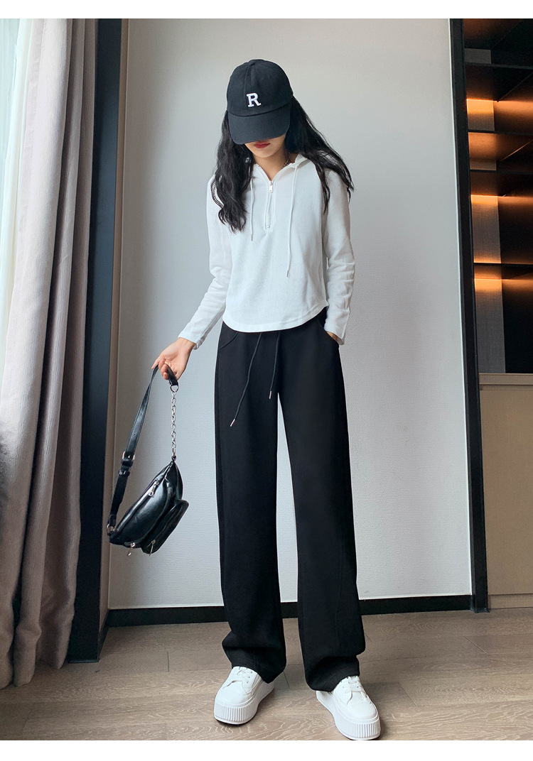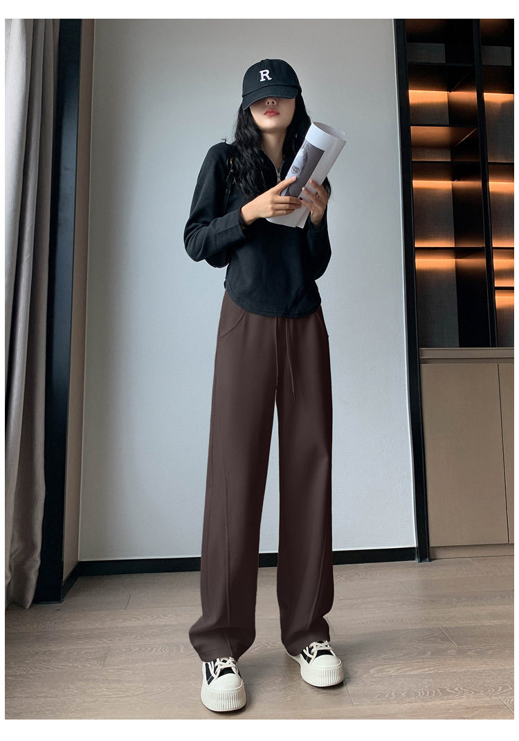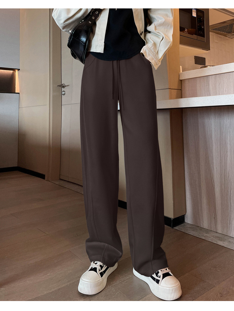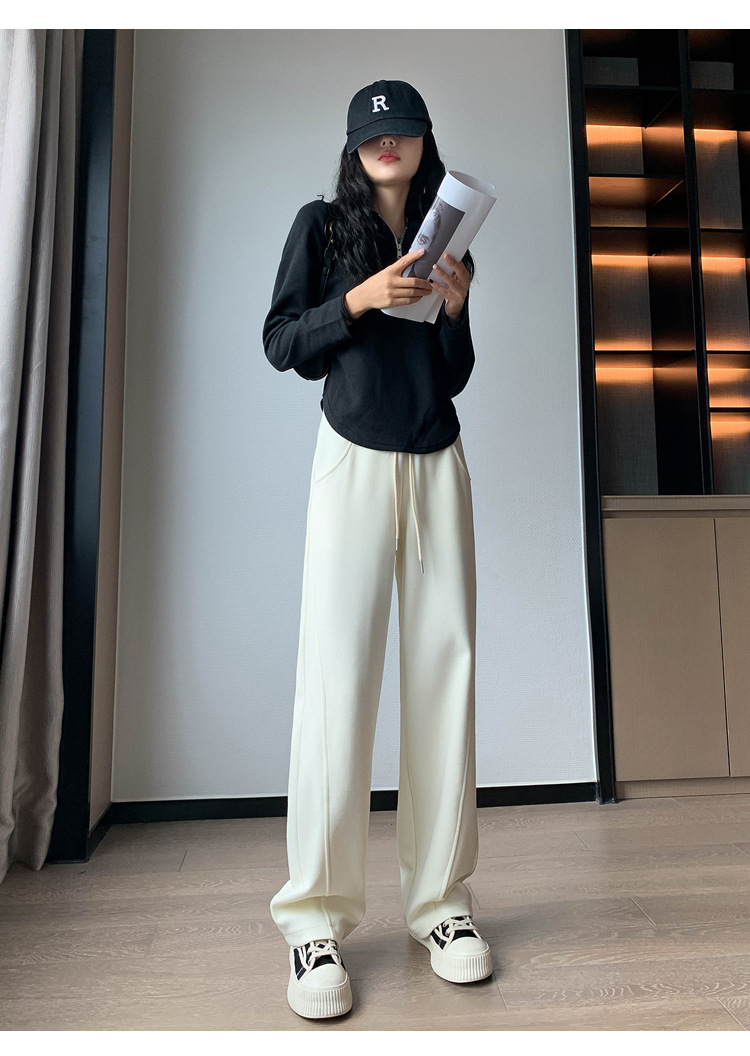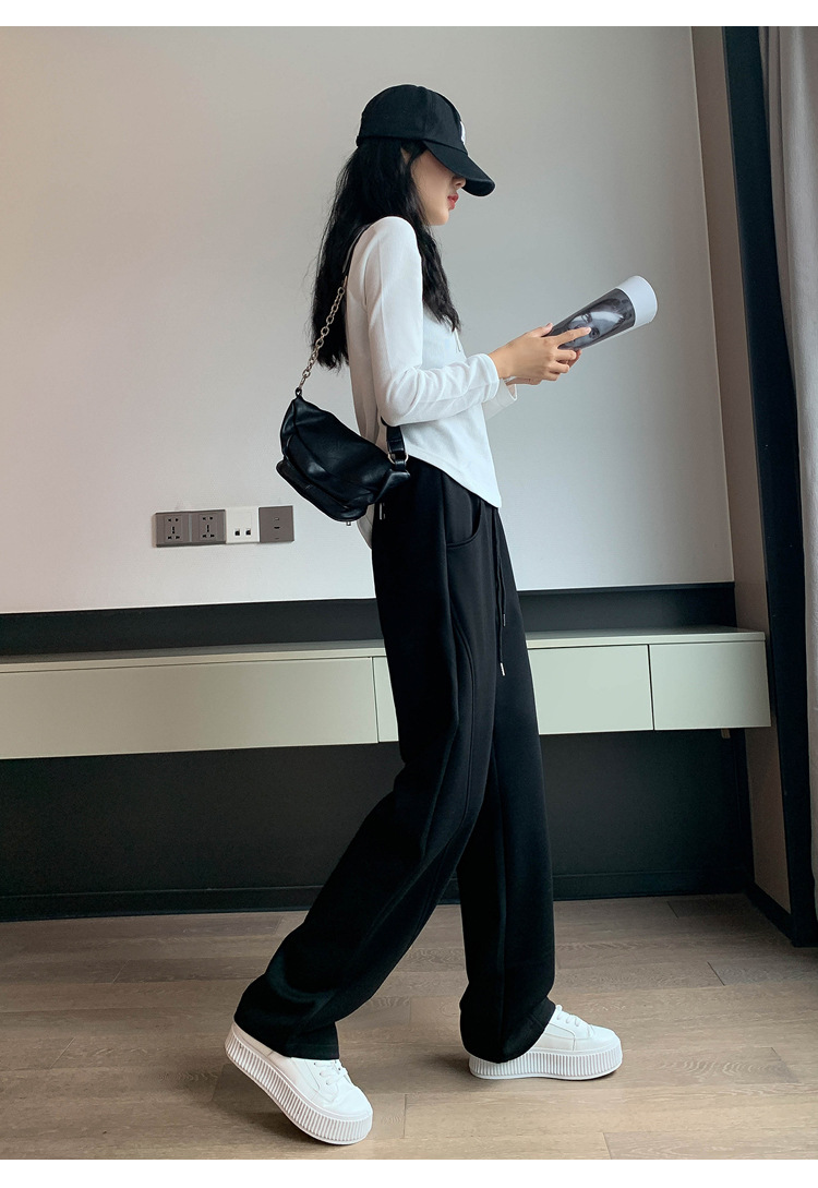 2024 겨울 새로운 와이드 레그 바지 새로운 마체테 바지 투약 느슨한 캐주얼 슬림 룩 여성을위한 올 매치 스트레이트 스포츠 바지