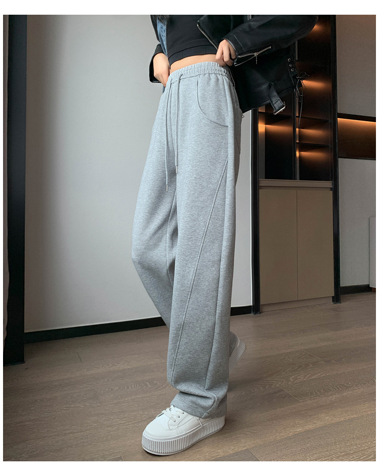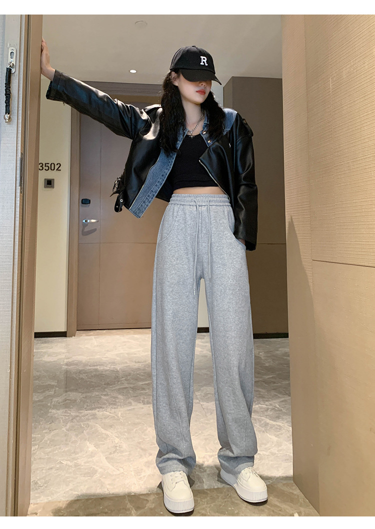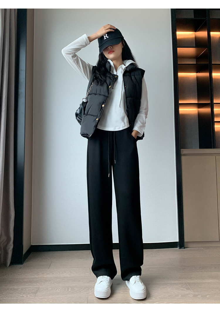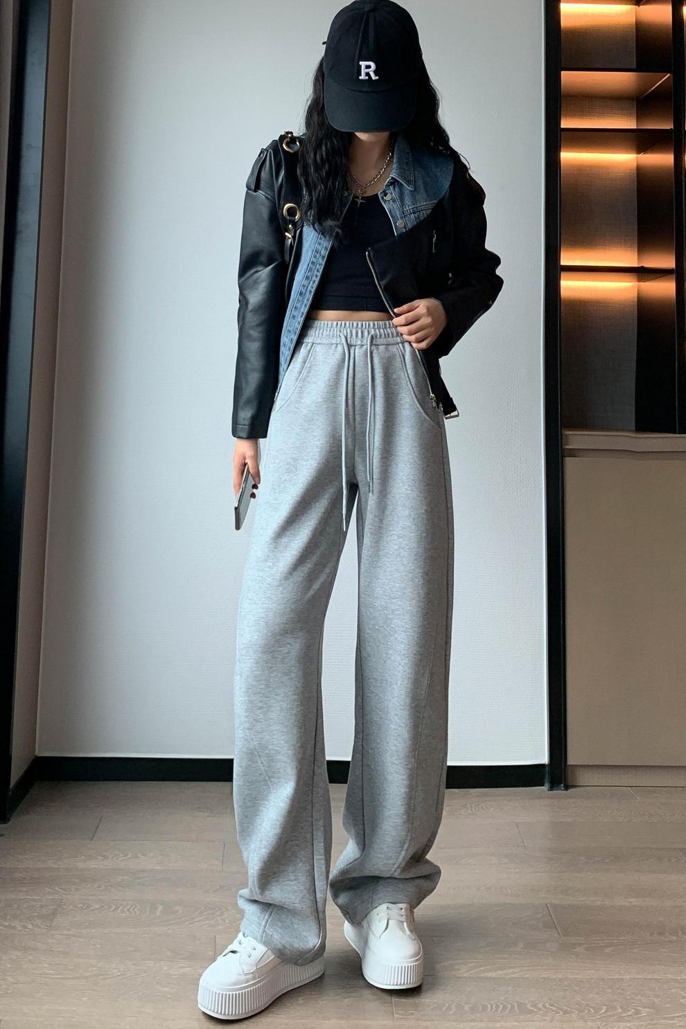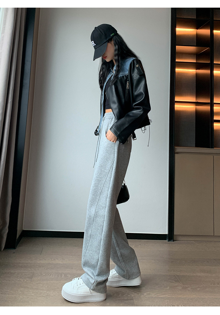 2024 겨울 새로운 와이드 레그 바지 새로운 마체테 바지 투약 느슨한 캐주얼 슬림 룩 여성을위한 올 매치 스트레이트 스포츠 바지