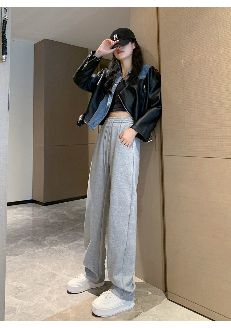 2024 겨울 새로운 와이드 레그 바지 새로운 마체테 바지 투약 느슨한 캐주얼 슬림 룩 여성을위한 올 매치 스트레이트 스포츠 바지스토어 가기