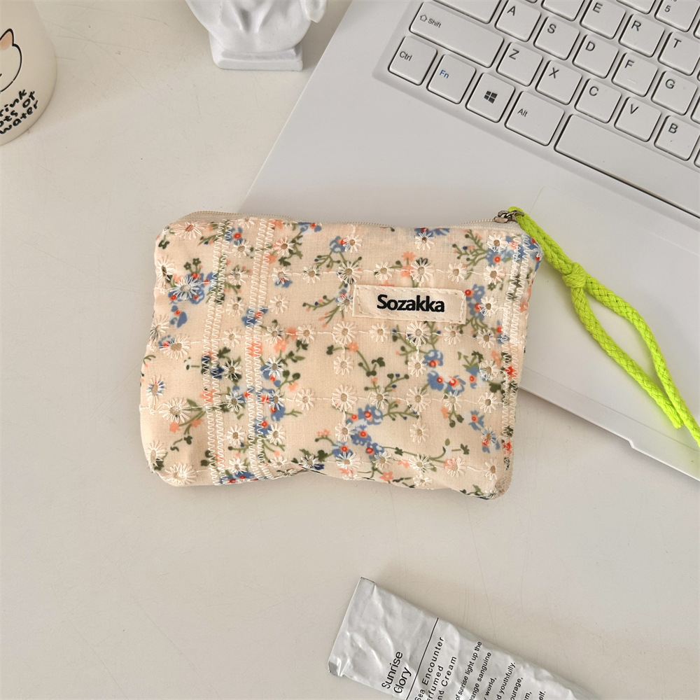 410111 스몰 사이즈 화장품 가방 신선한 작은 꽃 휴대용 메이크업 보관 가방 클러치 가방 지퍼 립스틱 보관스토어 가기