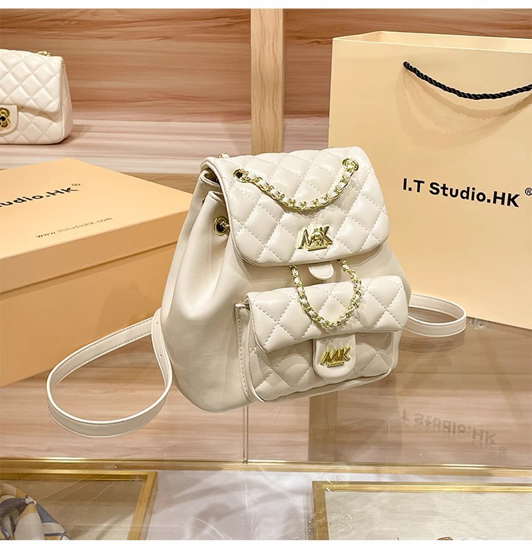 여성 가방 정품 가죽 Rhomboid 배낭 여름 유행 체인 부드러운 가죽 작은 배낭 2024 새로운 유행 올 매치 화이트 배낭스토어 가기