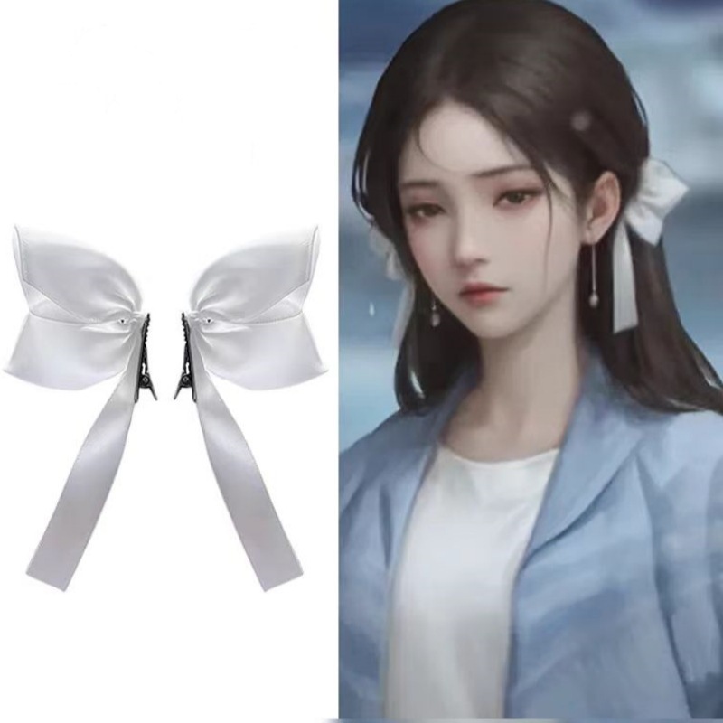입체적인 헤어 액세서리 Du Yan 2025 신상 헤어 액세서리, 같은 스타일의 새틴 고급 사이드 리본 머리핀