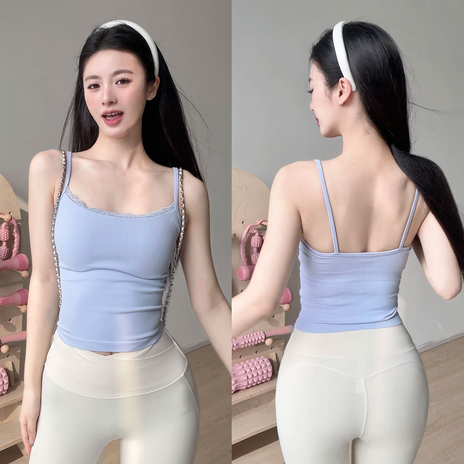 새로운 레이스 바느질 요가 조끼 얇은 어깨 끈 고정 가슴 패드 스포츠 속옷 슬링 원활한 피트니스 착용 브래지어
