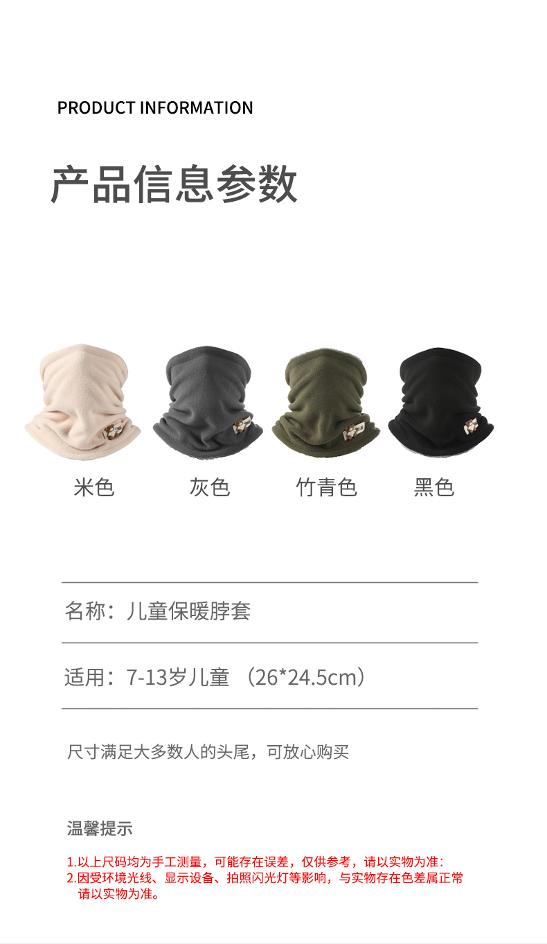 어린이 따뜻한 목 세트 가을과 겨울 소년 소녀를위한 작은 스카프 초등학생을위한 두꺼운 스카프 야외 얼굴과 목 통합 풀오버스토어 가기