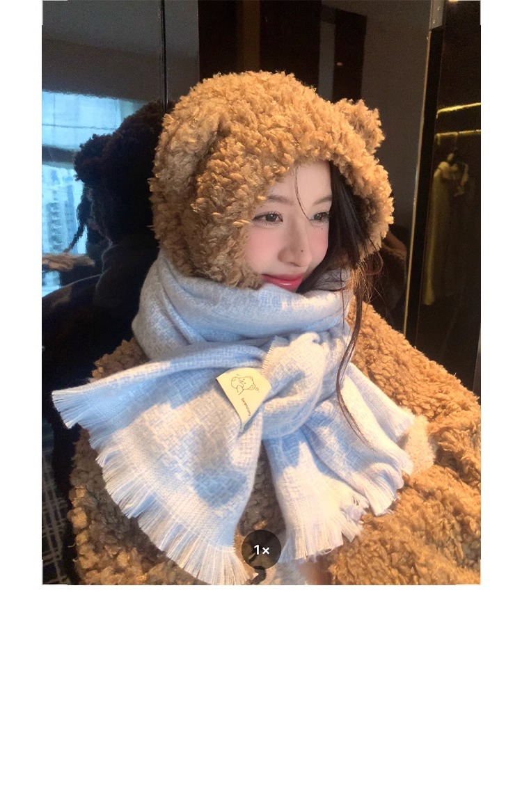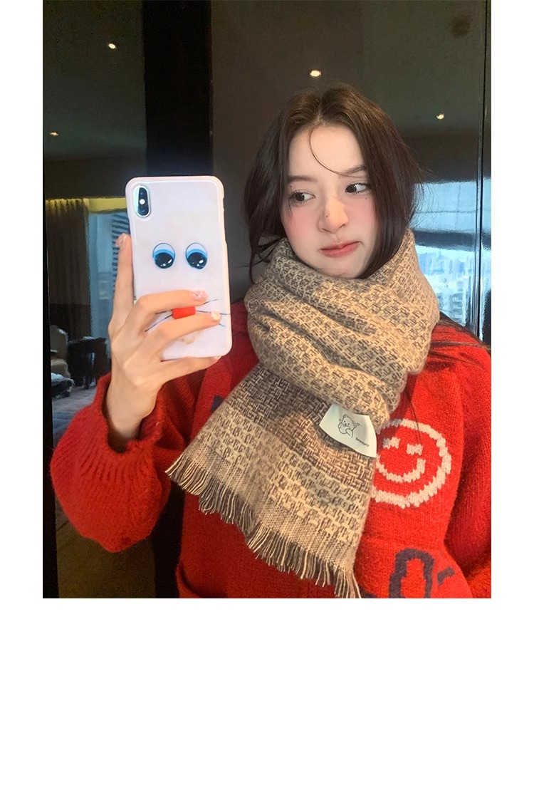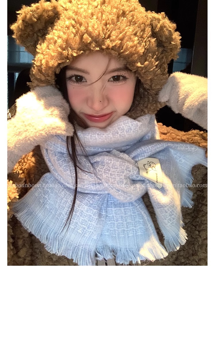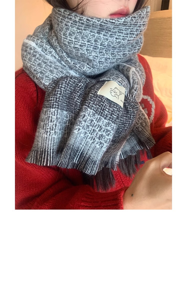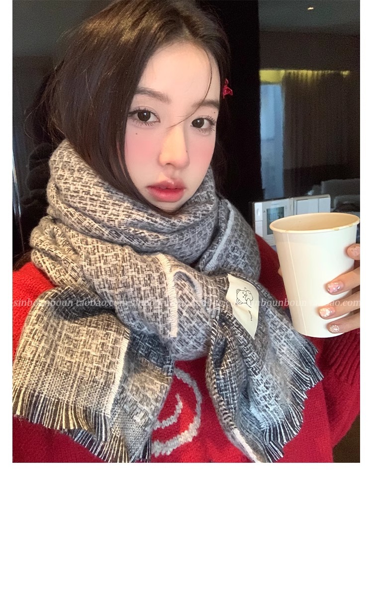 한국식 겨울 격자 무늬 스카프 따뜻한 캐시미어 술 곰 두꺼운 스카프 패션 올매치 여자 목도리