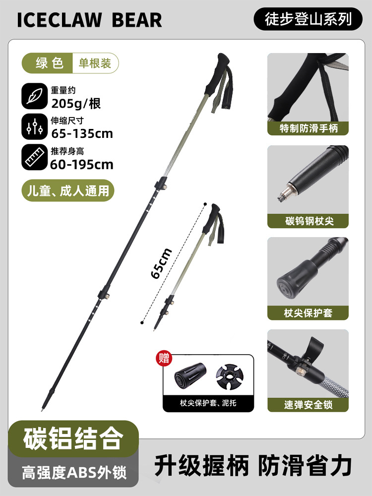 전문 하이킹 야외 탄소 섬유 트레킹 스틱 초경량 3 섹션 휴대용 트레킹 스틱 미끄럼 방지 텔레스코픽 탄소 스틱