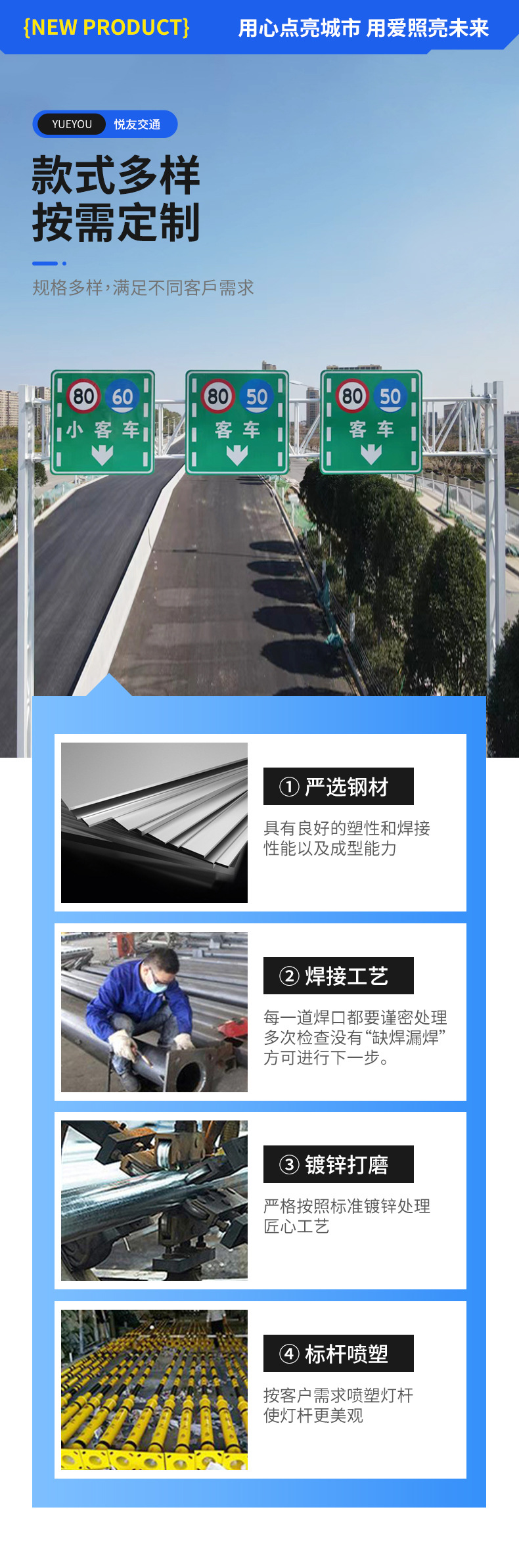 교통 표지판 극 알루미늄 합금 반사 도로 표지판 고속도로 단일 및 이중 캔틸레버 F 형 표지판스토어 가기