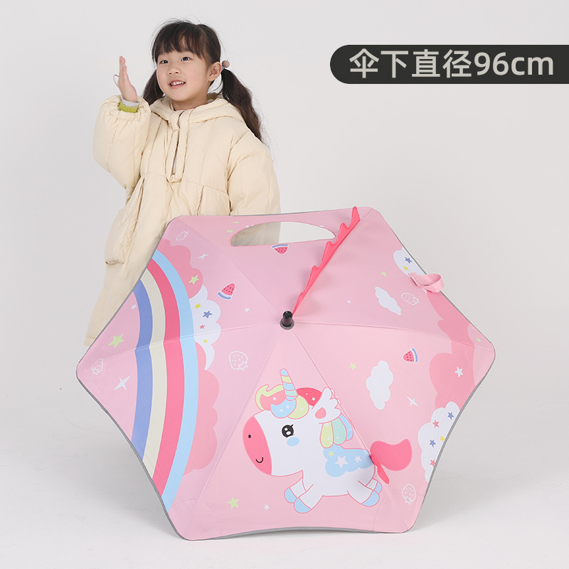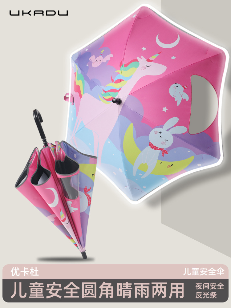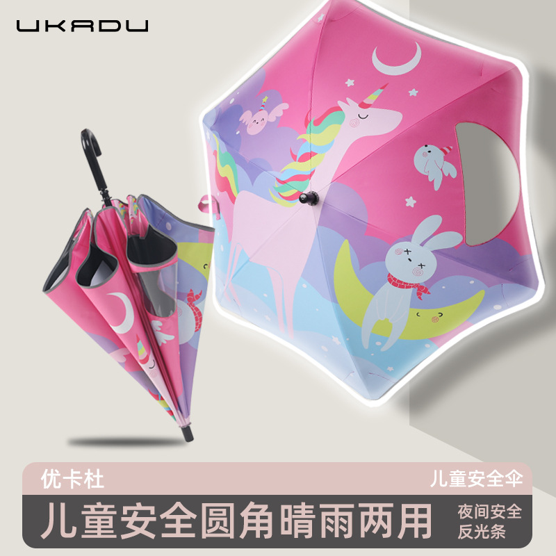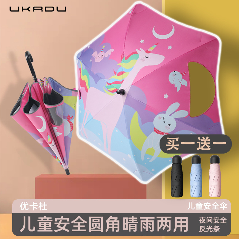 어린이 귀여운 우산 유치원 초등학생 둥근 햇빛 맑고 비 이중 목적 검은 스카이라이트 스테레오스토어 가기