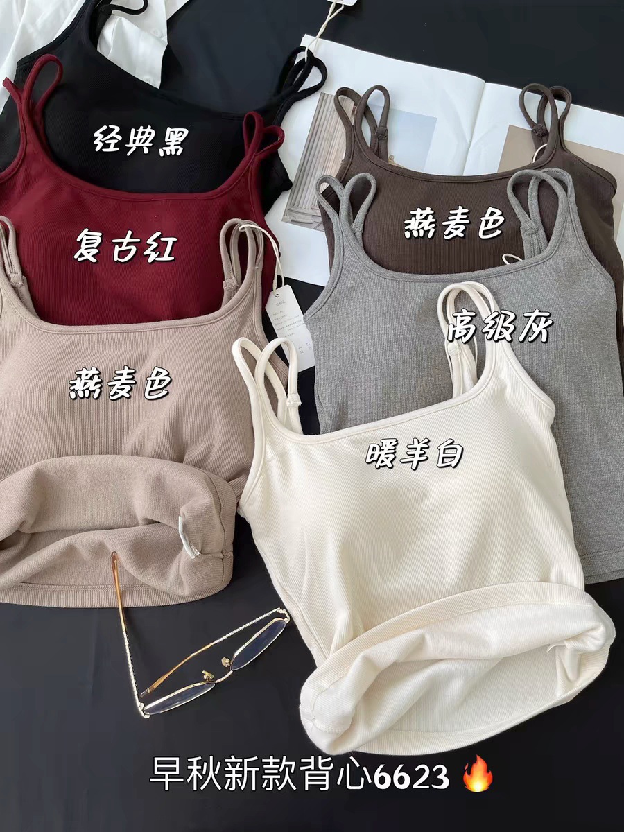 가을과 겨울 샌딩 아름다운 뒤 조끼 카미솔 가슴 패드 통합 더블 어깨 스트랩 탄성 내부 및 외부 기본 따뜻한 탑스토어 가기