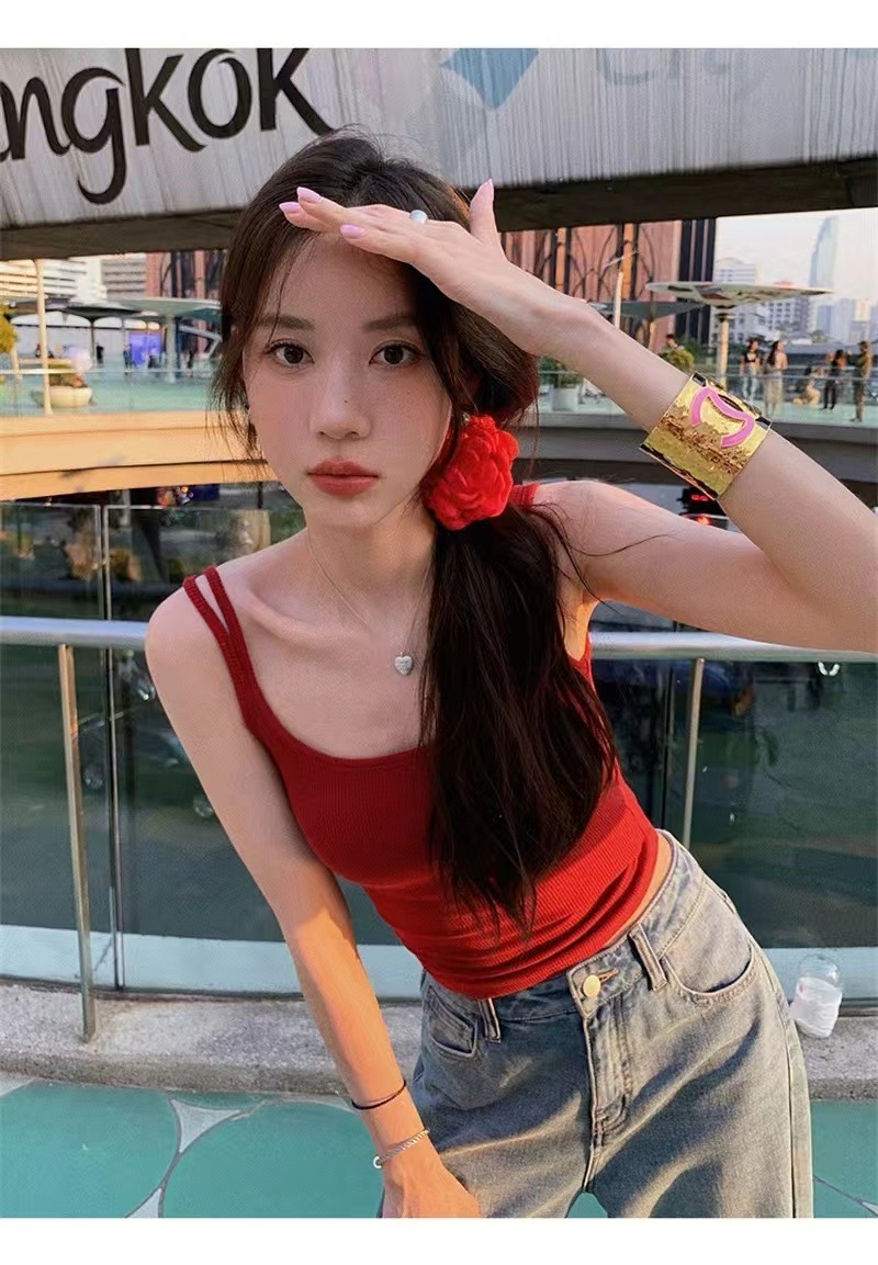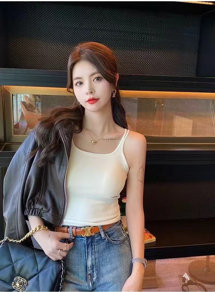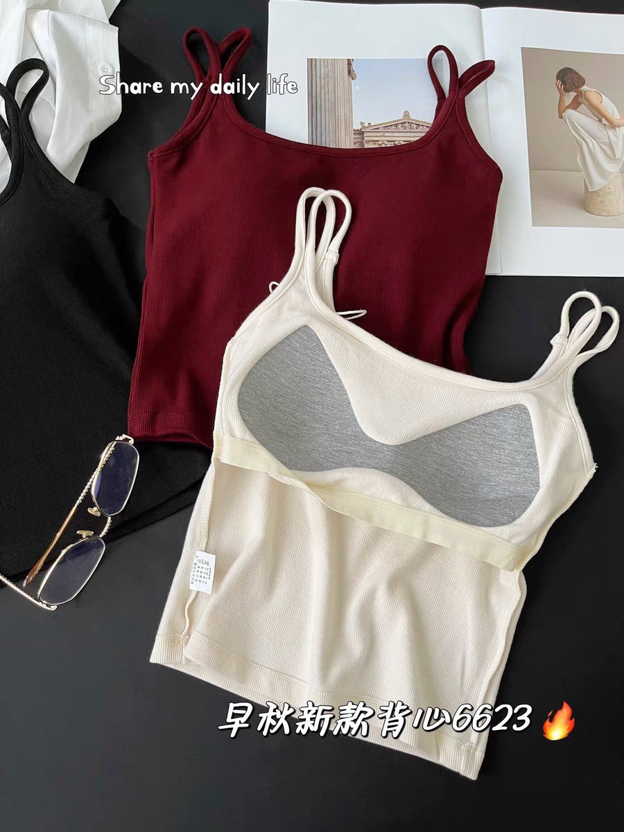 가을과 겨울 샌딩 아름다운 뒤 조끼 카미솔 가슴 패드 통합 더블 어깨 스트랩 탄성 내부 및 외부 기본 따뜻한 탑