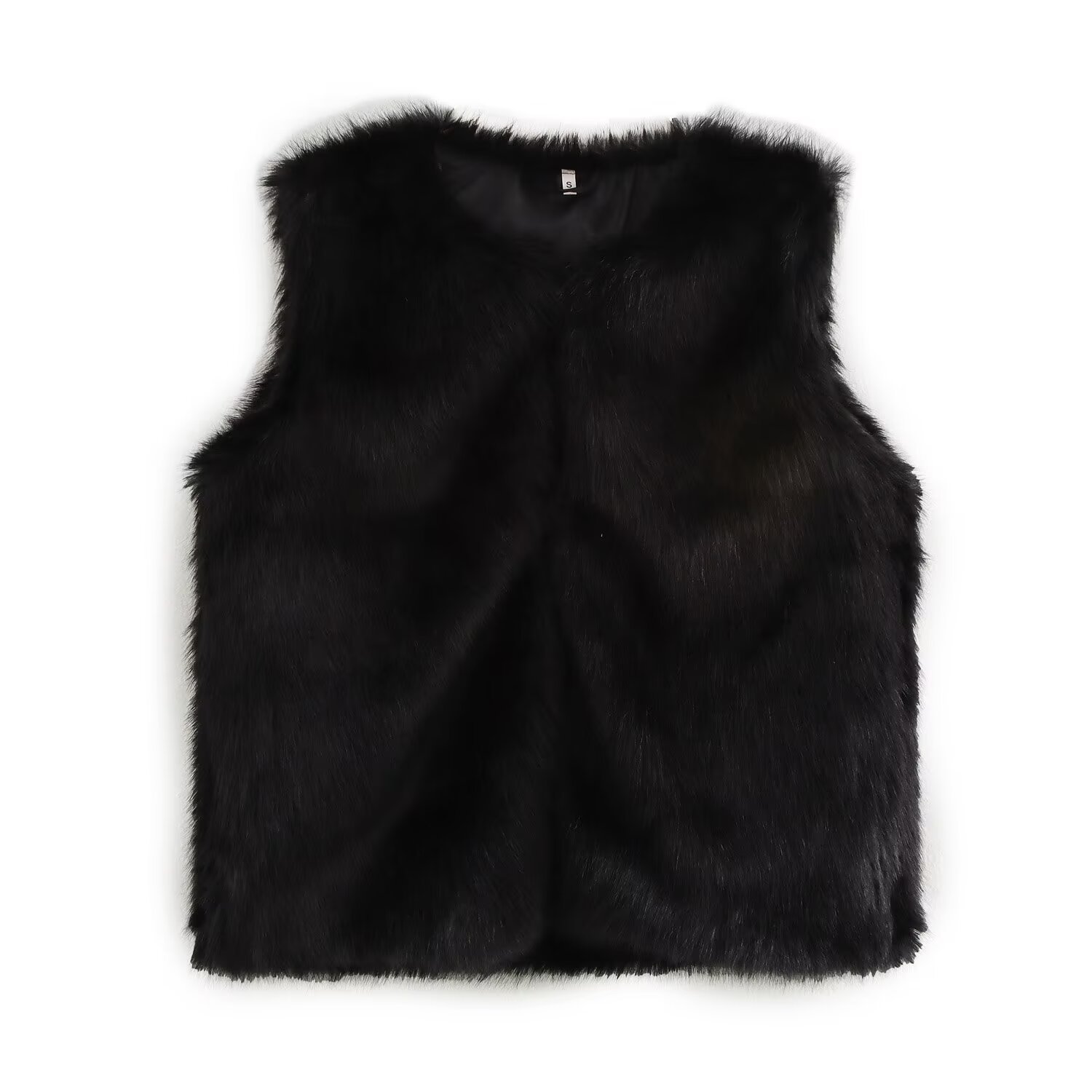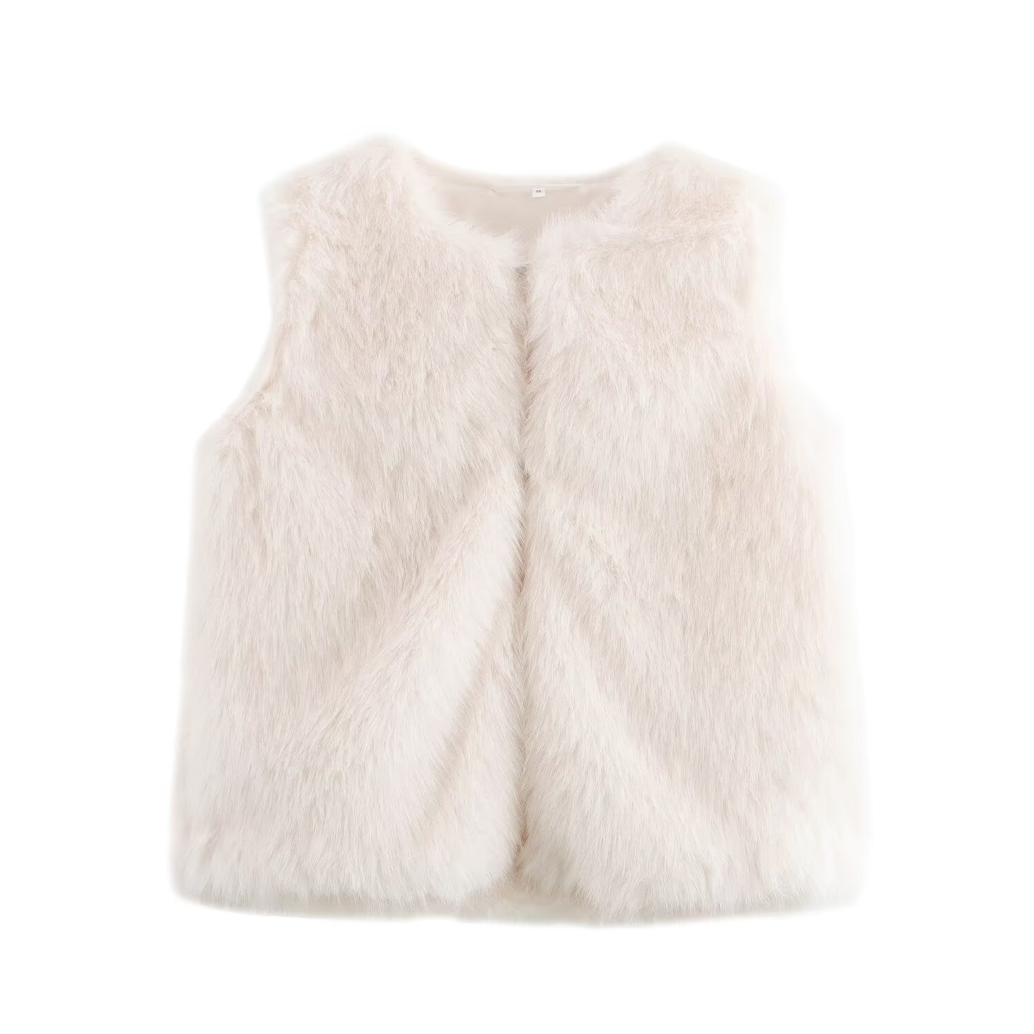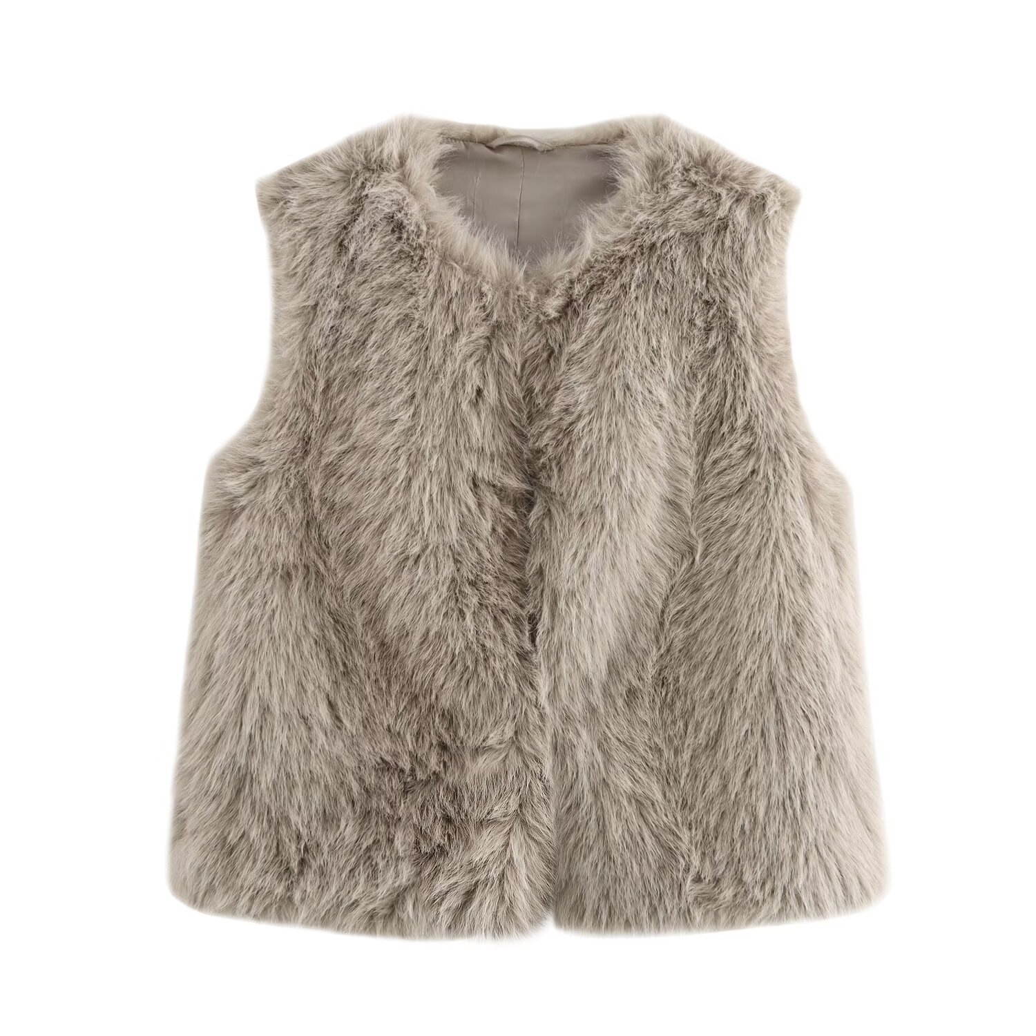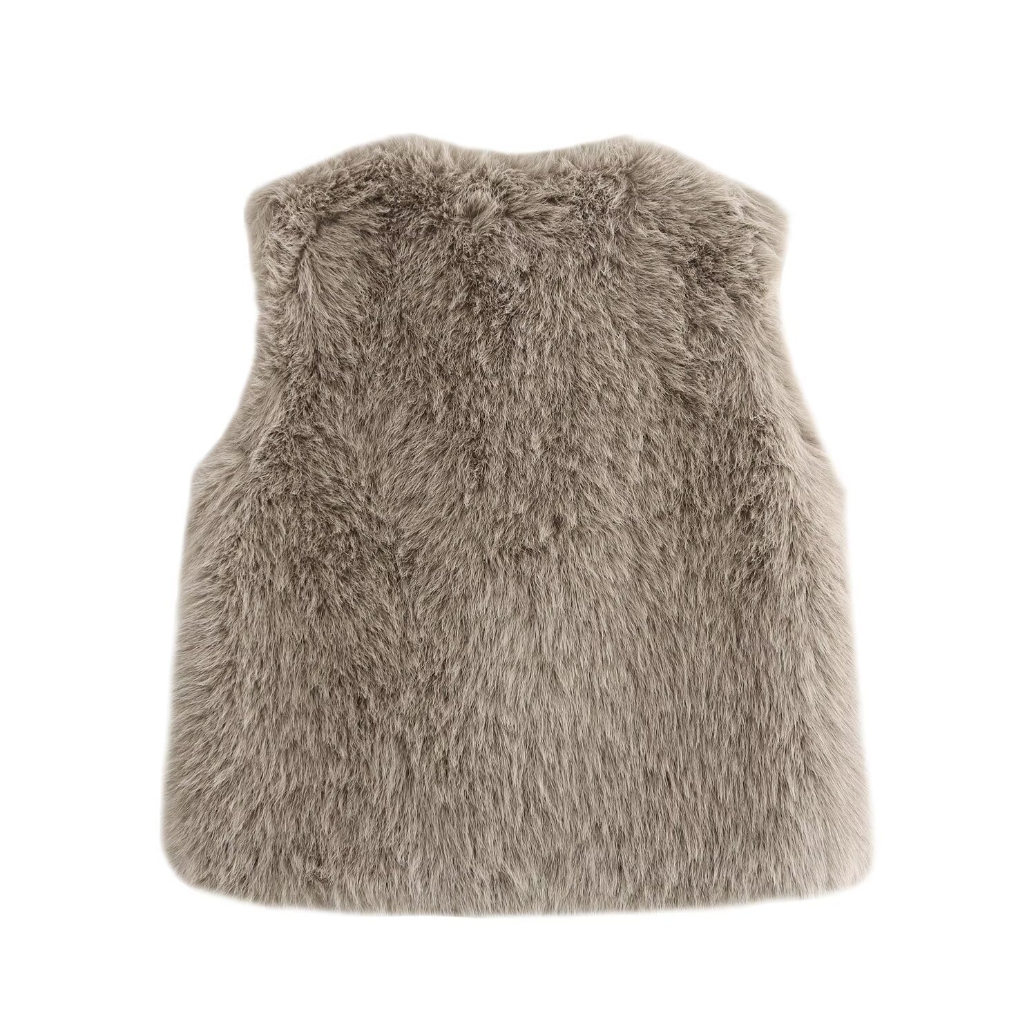 여성용 겨울 2024 유럽과 미국의 느슨한 모피 효과 민소매 크루 넥 짧은 조끼 외부 착용스토어 가기
