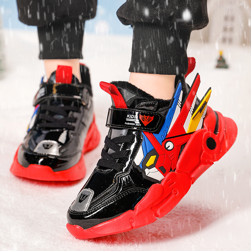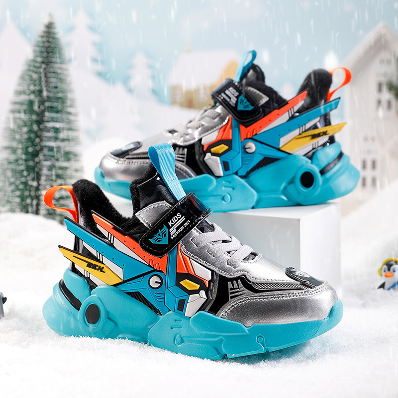 소년 봄과 가을 새로운 패션 가죽 편안한 중간과 큰 아이 달리기 신발 캐주얼 벨크로 운동화