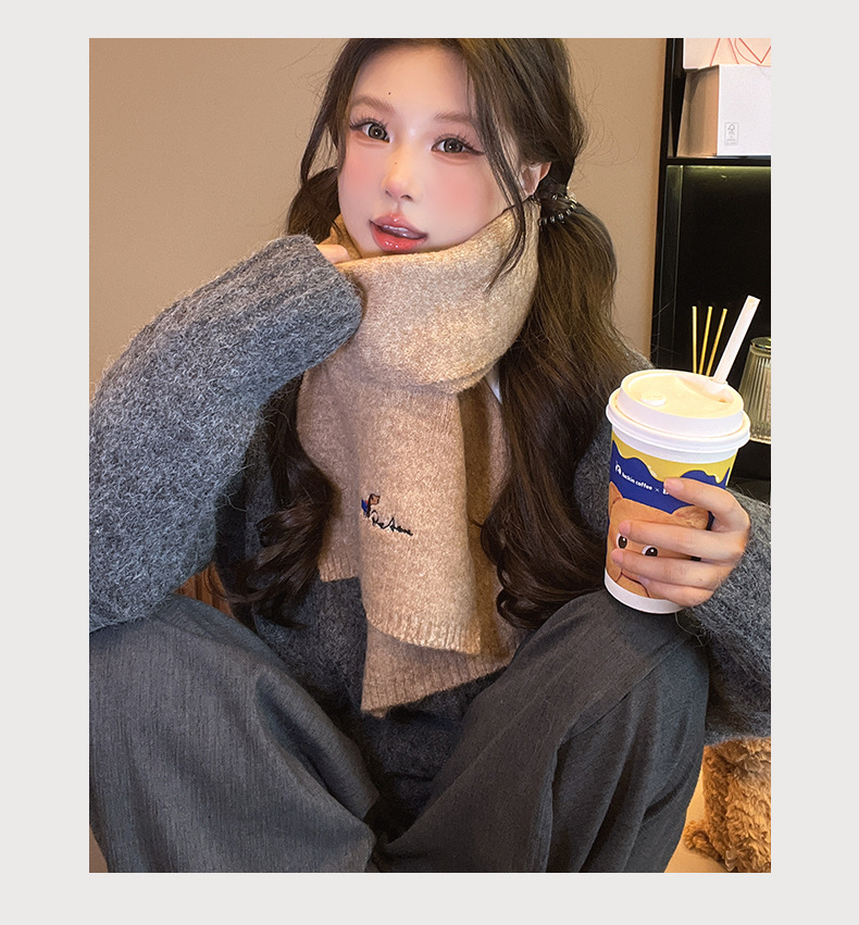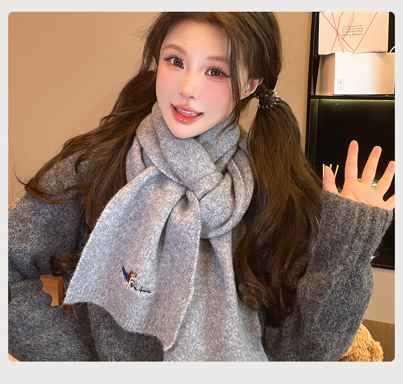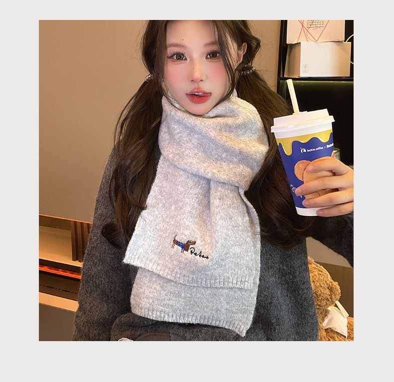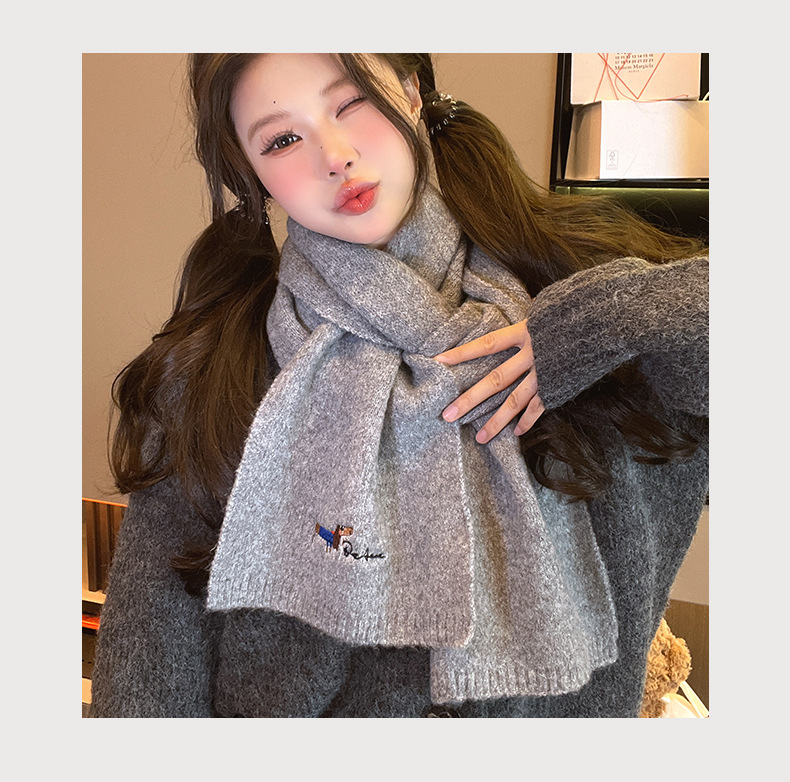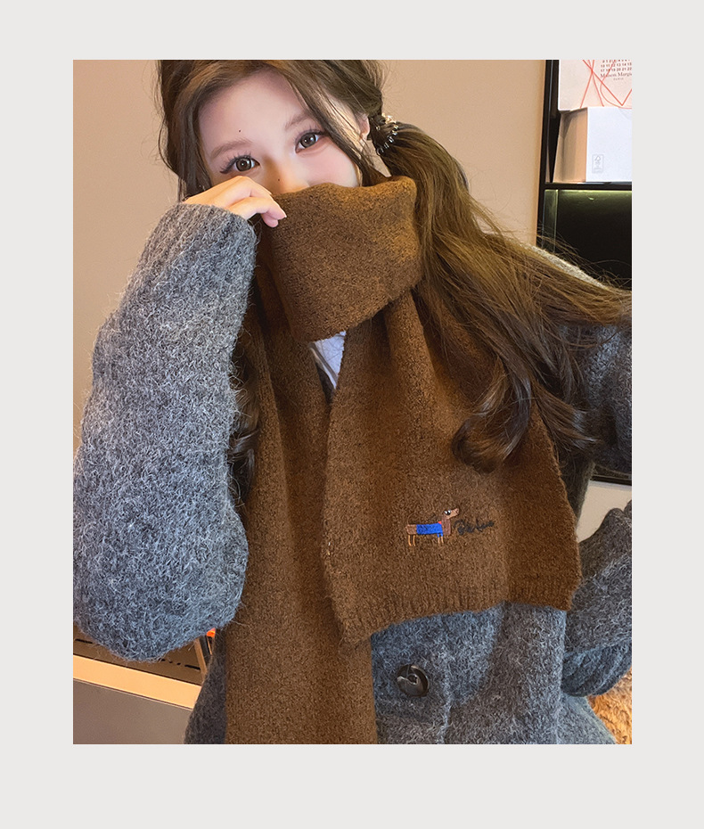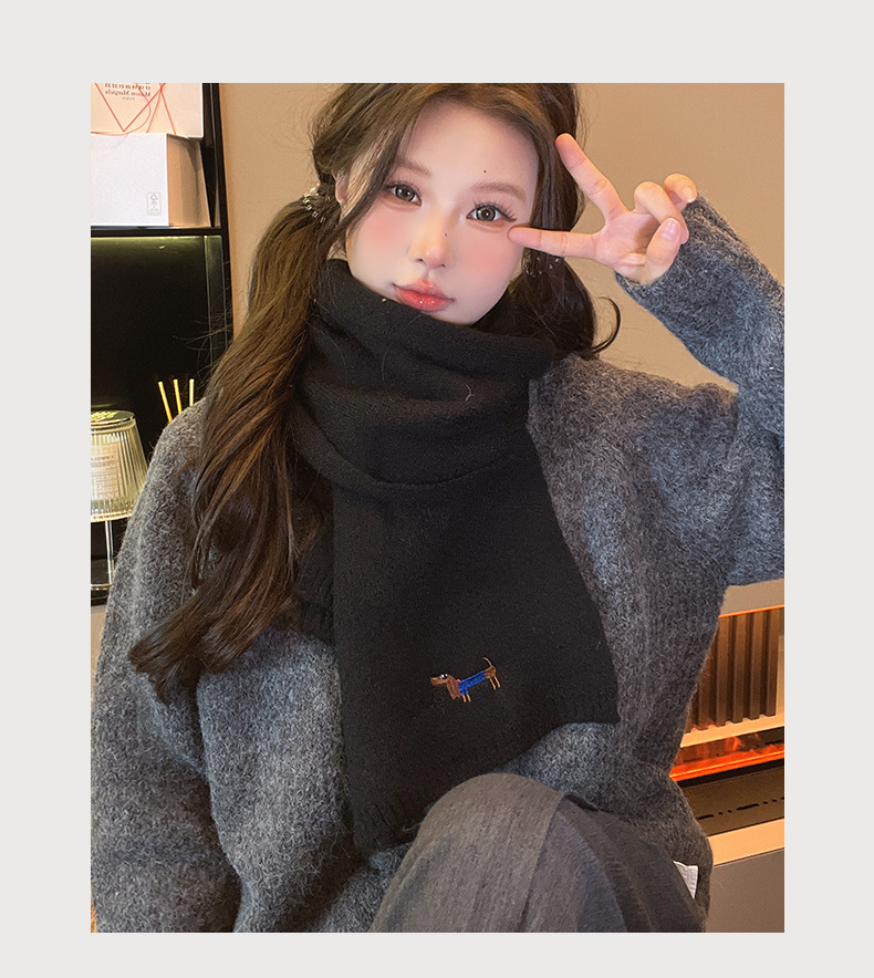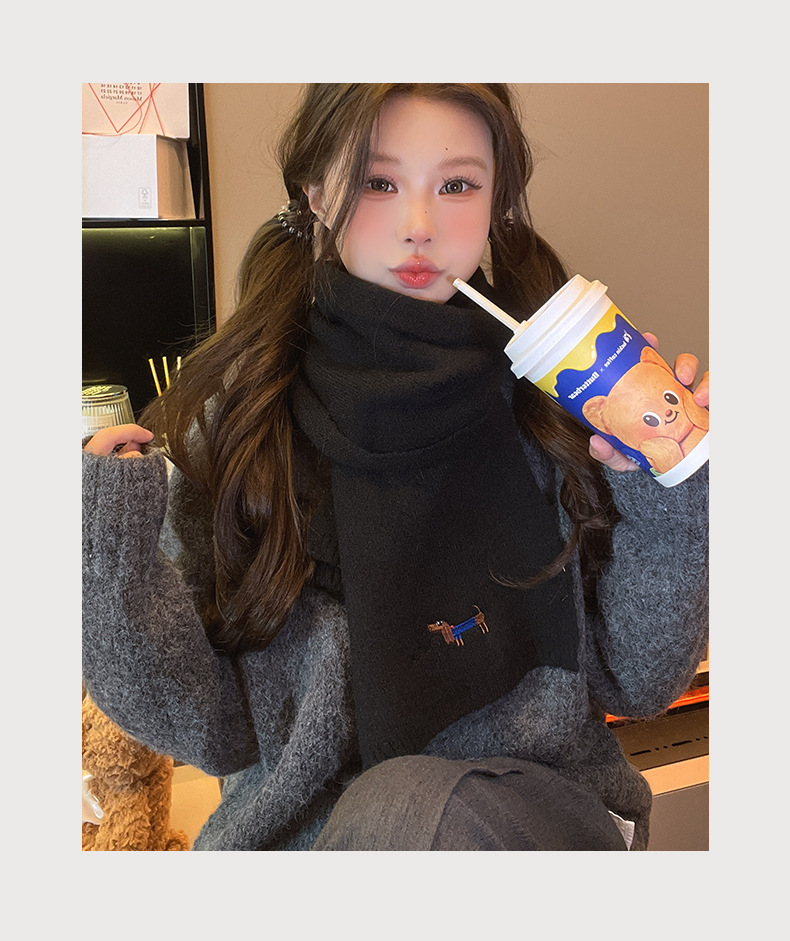 일본식 자수 강아지 니트 스카프 여성 가을과 겨울 학생 사이클링 따뜻한 올 매치 캐시미어 커플 스카프 남성