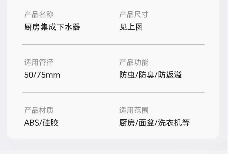 • 통합 배수 바텀 브래킷 [회색]은 50/75 파이프에 연결할 수 있습니다.