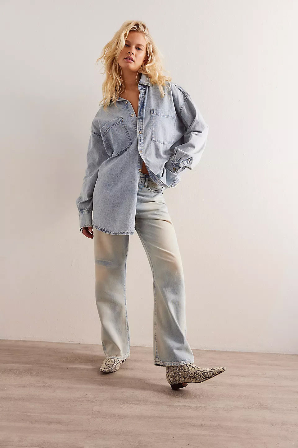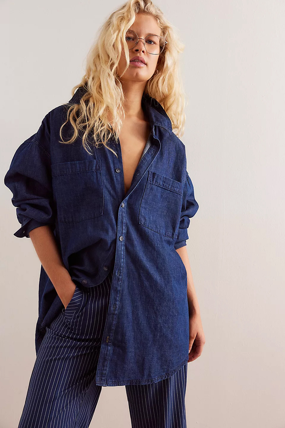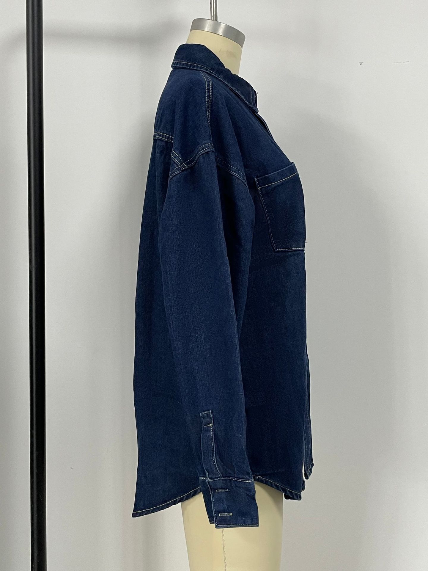유럽과 미국의 대외 무역 국경 간 느슨한 복고풍 캐주얼 게으른 스타일 데님 셔츠스토어 가기