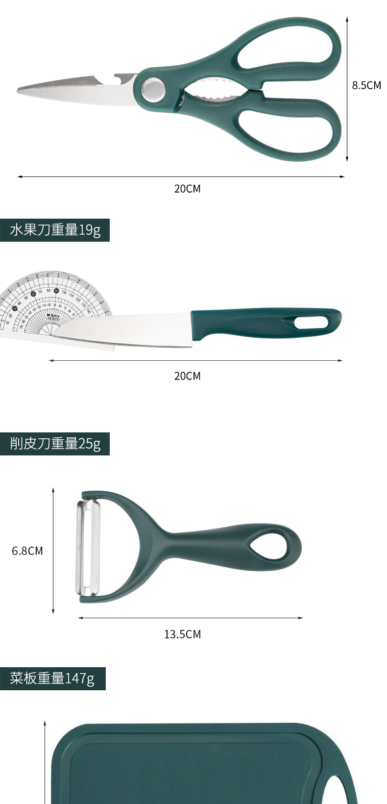 • 20cm 짙은 녹색 과일 절단기