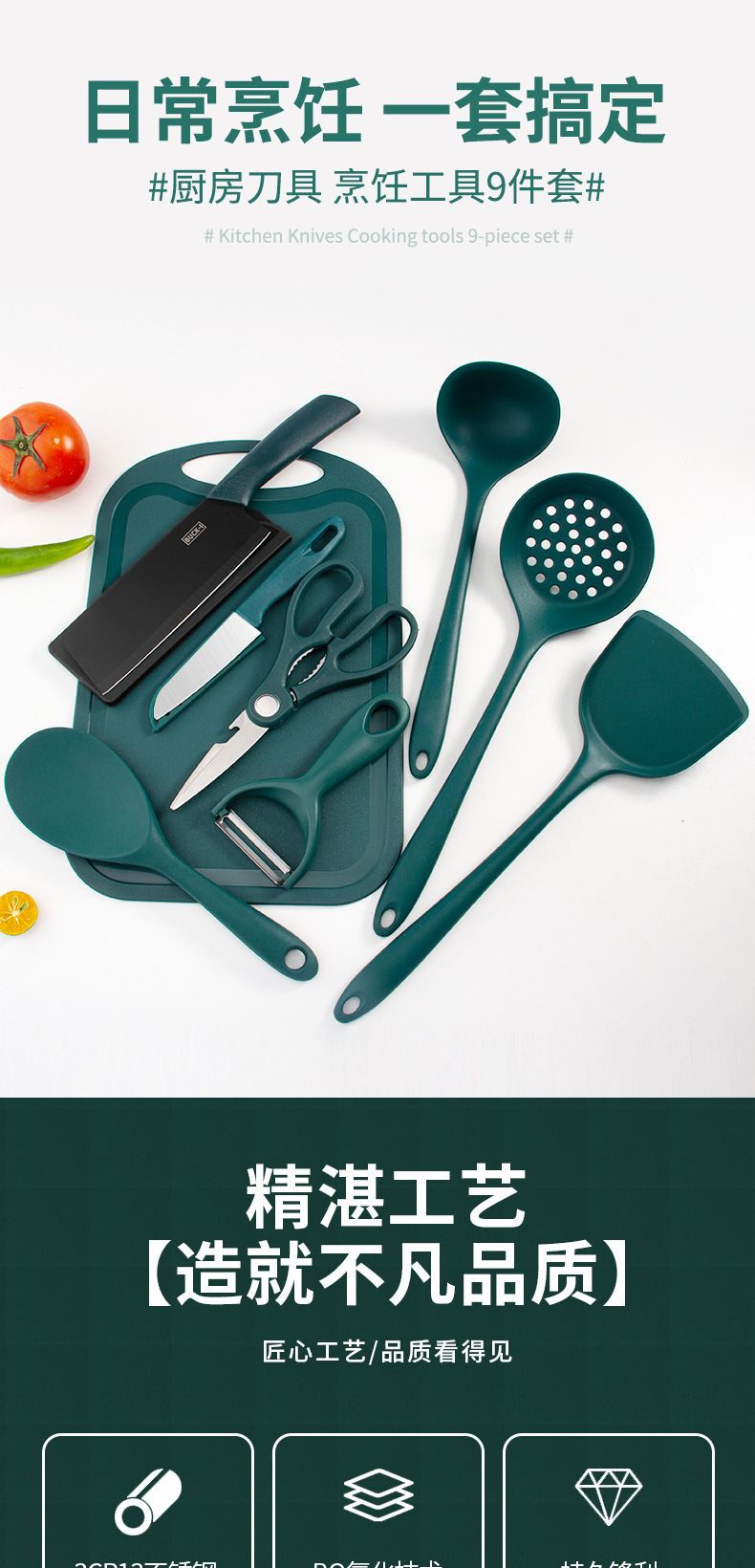 실리콘 주방 주방 용품 9 피스 세트 요리 실리콘 주걱 수프 스푼 튀김 삽 소쿠리 밥 스푼 주방 칼 도마 가위 필링 칼스토어 가기