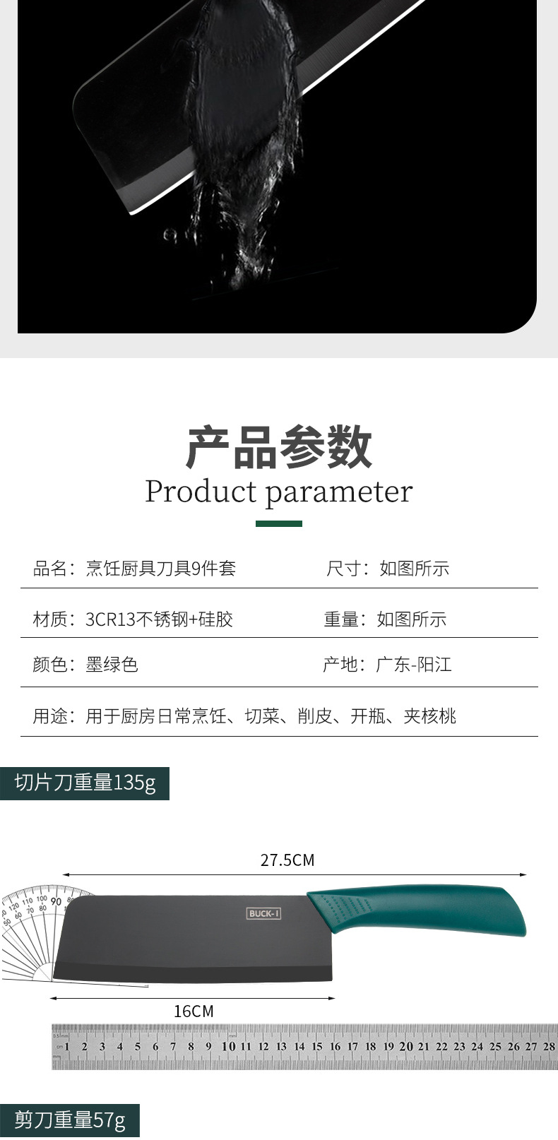• 27.5cm 짙은 녹색 슬라이스 나이프