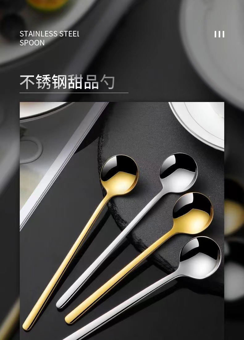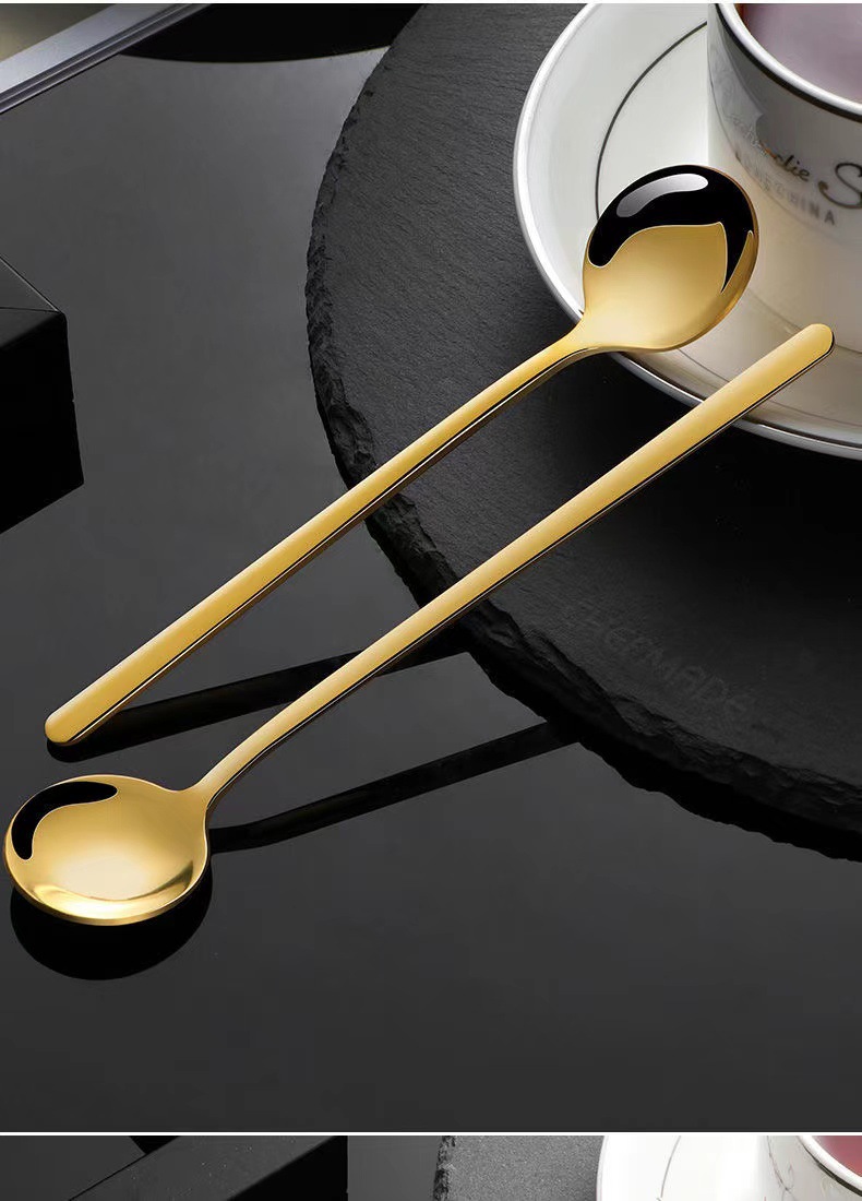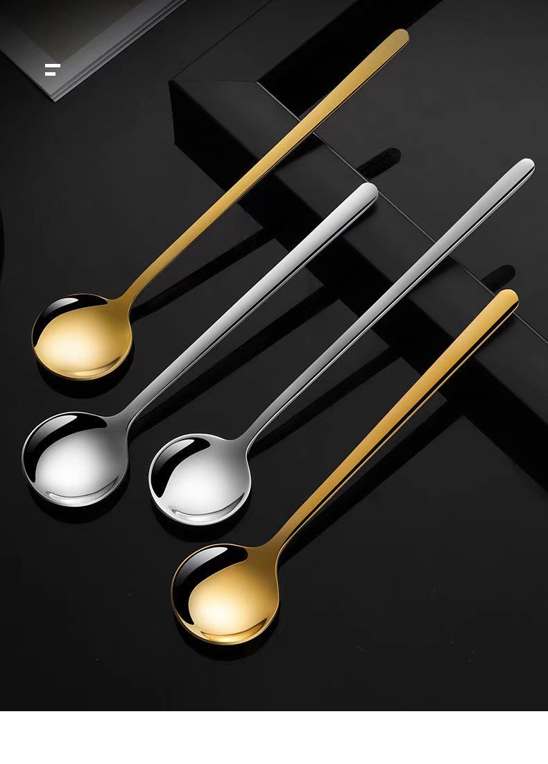 가정용 스테인레스 스틸 스푼 높은 색상 가치 작은 둥근 숟가락 긴 손잡이 커피 혼합 숟가락 식기 선물 디저트 스푼 도매