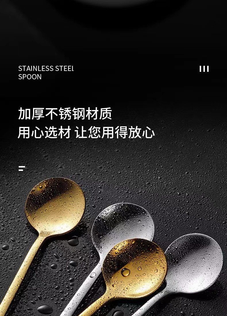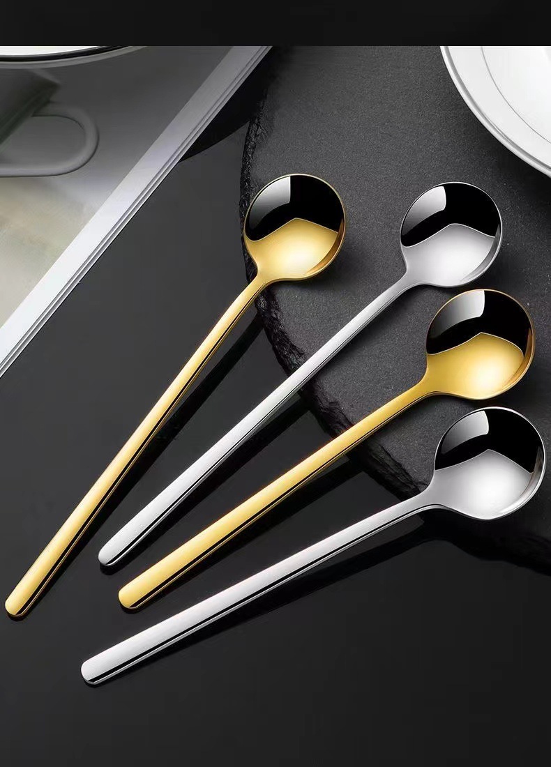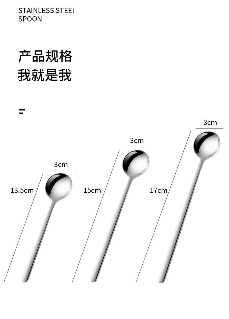 가정용 스테인레스 스틸 스푼 높은 색상 가치 작은 둥근 숟가락 긴 손잡이 커피 혼합 숟가락 식기 선물 디저트 스푼 도매스토어 가기