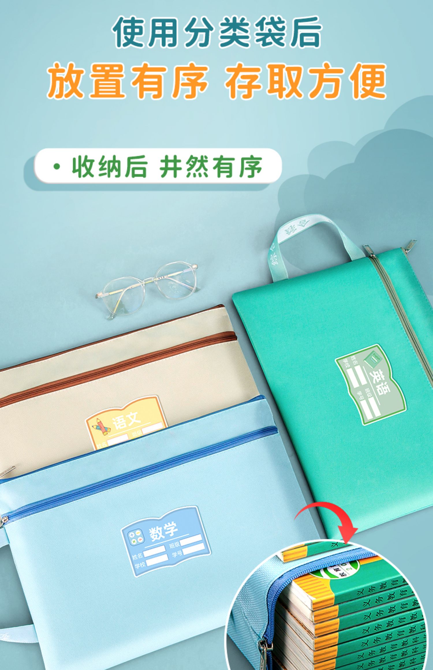 제목 문서 가방 초등학교 학생 교과서 주제 분류 가방 테스트 종이 저장 가방 a4 캔버스 지퍼 핸드 헬드 번호스토어 가기