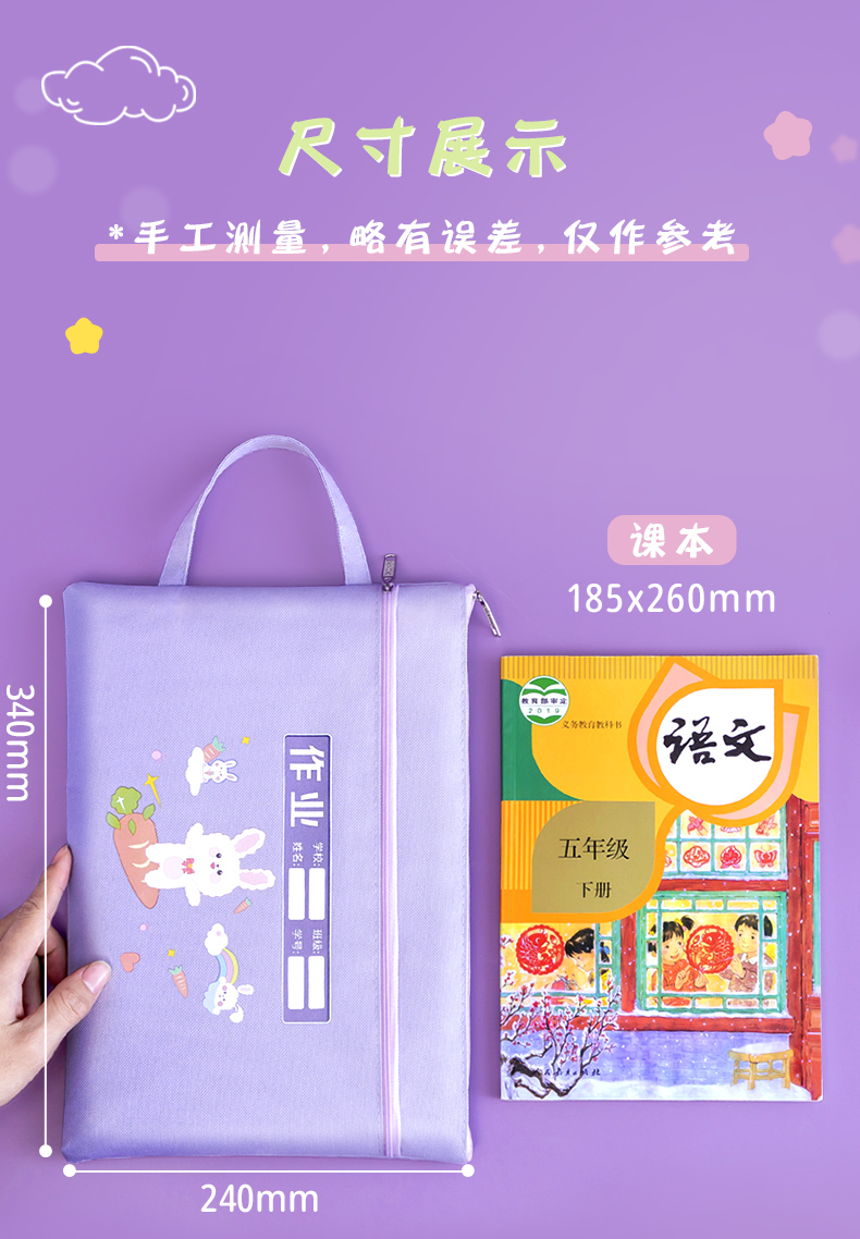 제목 문서 가방 초등학교 학생 교과서 주제 분류 가방 테스트 종이 저장 가방 a4 캔버스 지퍼 핸드 헬드 번호