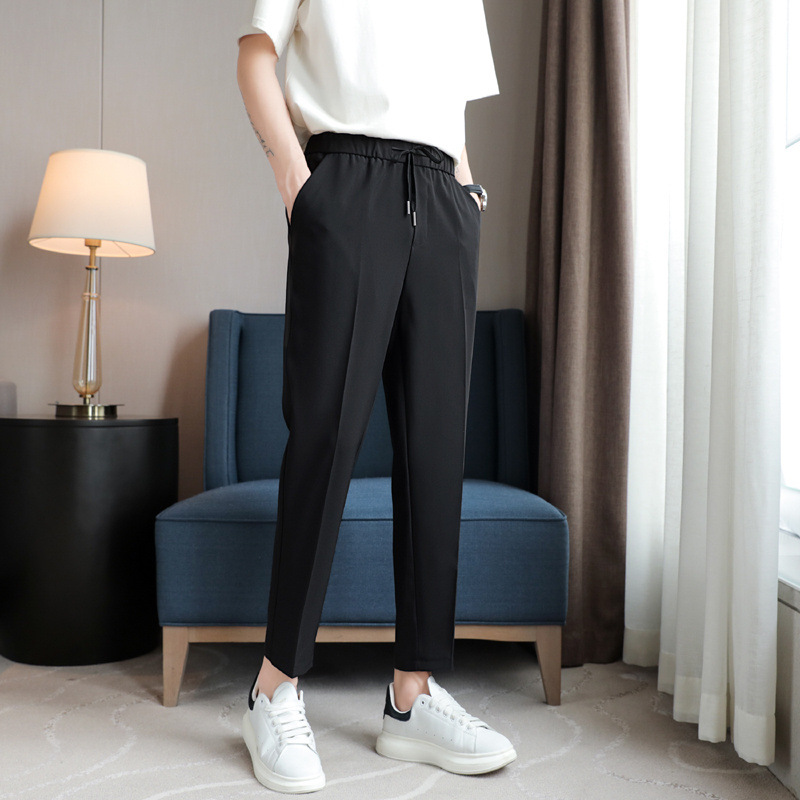 패딩 펜던트와 펜던트 스타일 스트레이트 트렌디 브랜드 캐주얼 바지 작은 발 티더 바지 남성용 가을 겨울 기모 바지스토어 가기