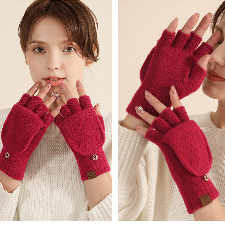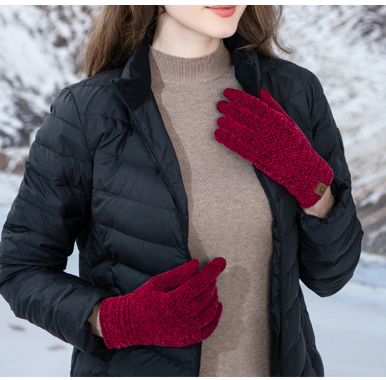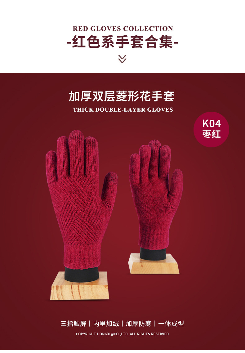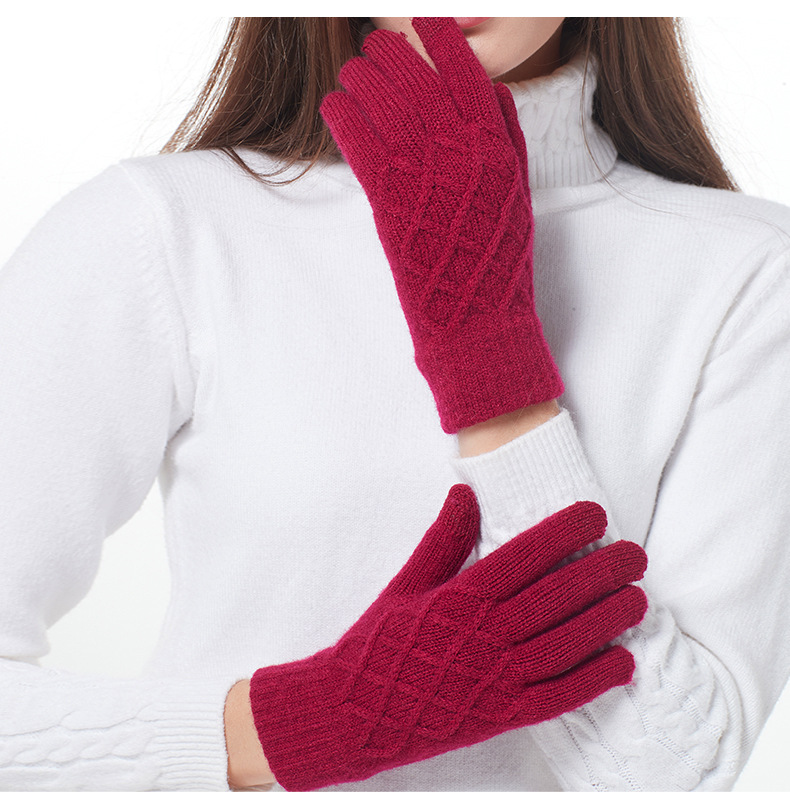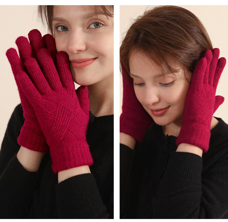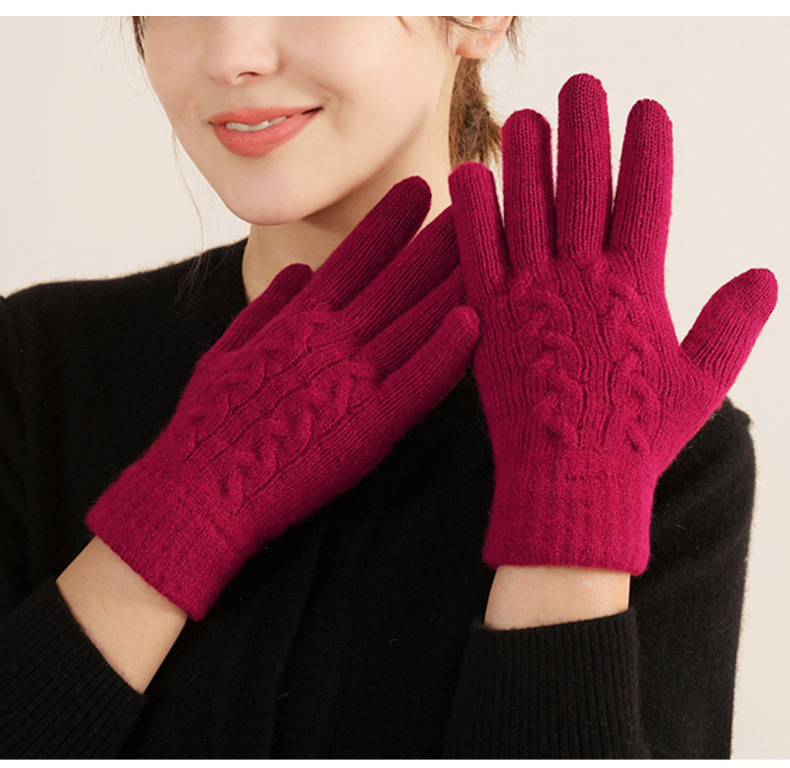 니트 안코라 레드 장갑 여성용 겨울 따뜻한 냉간 두꺼운 단색 올 매치 사이클링 터치 스크린 핑거 장갑스토어 가기