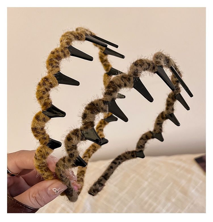달콤한 쿨 레오파드 패턴 치아 웨이브 헤어 후프 여성 가을 헤어 루트 푹신한 아티팩트 워시 얼굴 압력 헤어 비 슬립 후프 헤어 클립 헤드 주소스토어 가기