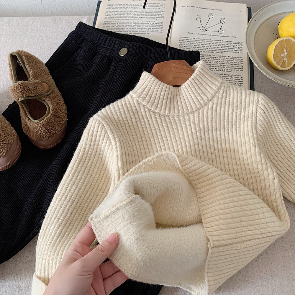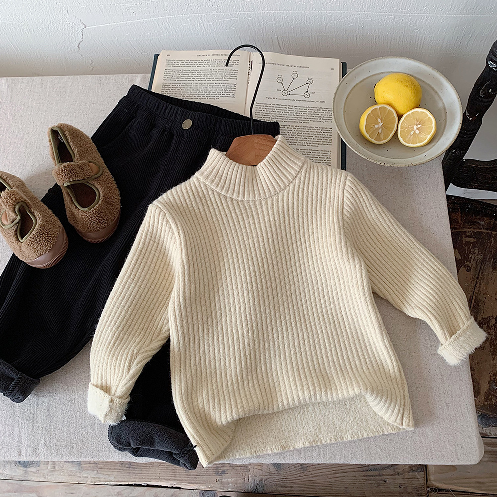 목원 겨울용 두꺼운 스웨터, 호주 직물로 만든 아동복, 남녀 아동용 한국 스타일 플리스 니트 스웨터, 아동용 하이넥 상의