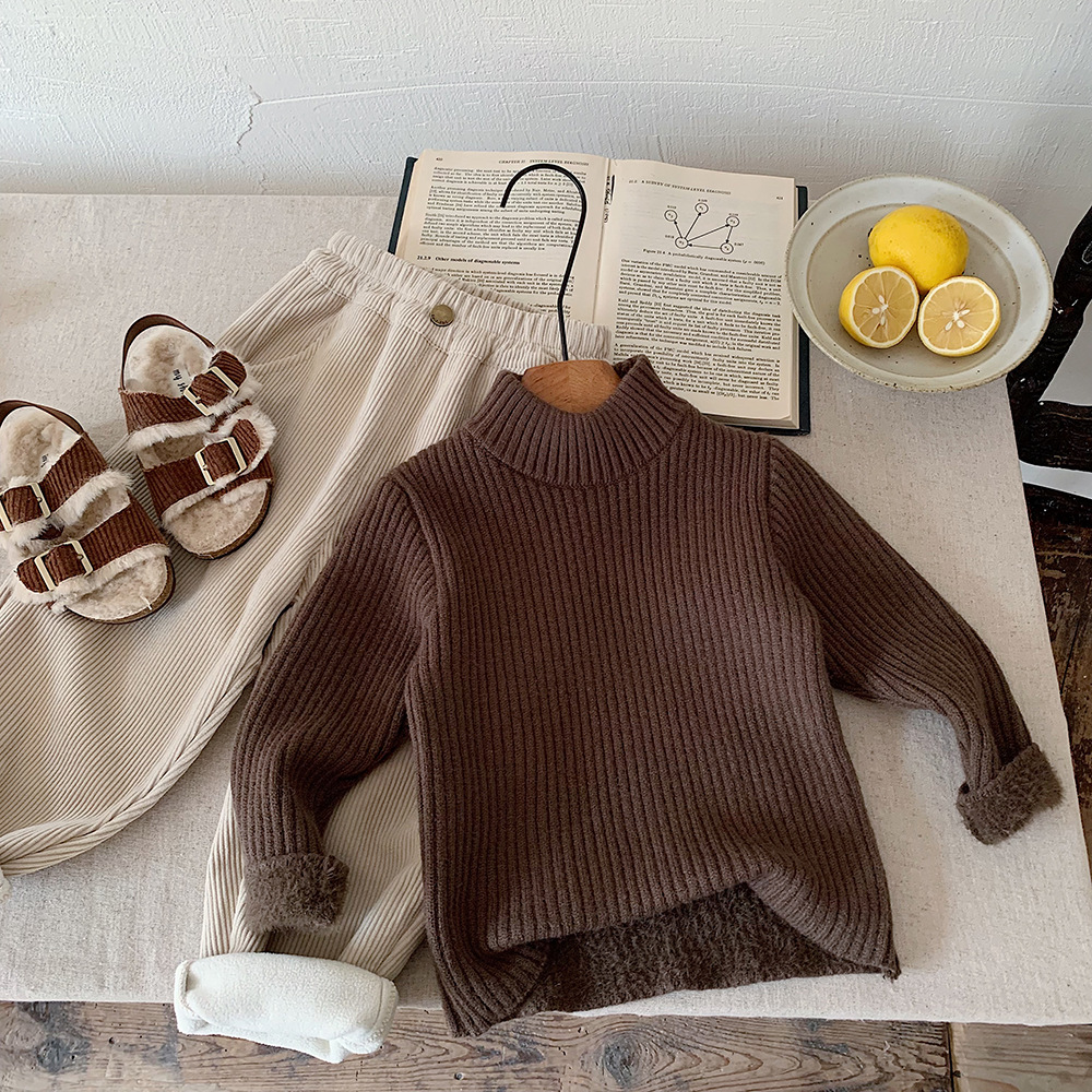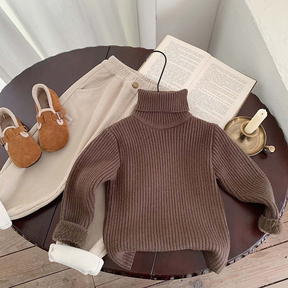 목원 겨울용 두꺼운 스웨터, 호주 직물로 만든 아동복, 남녀 아동용 한국 스타일 플리스 니트 스웨터, 아동용 하이넥 상의스토어 가기