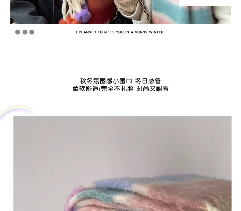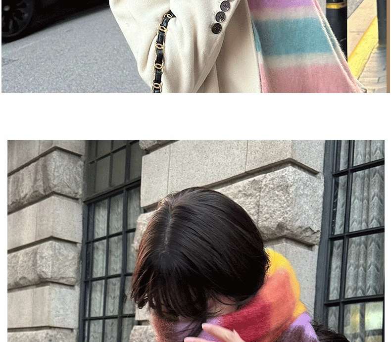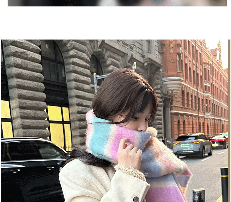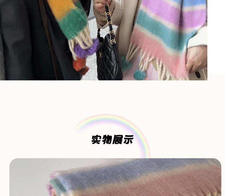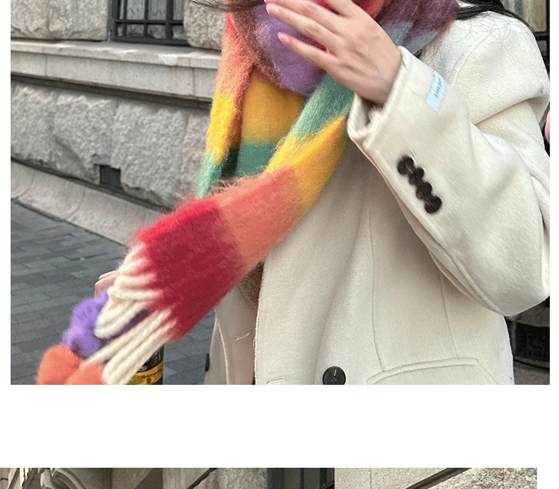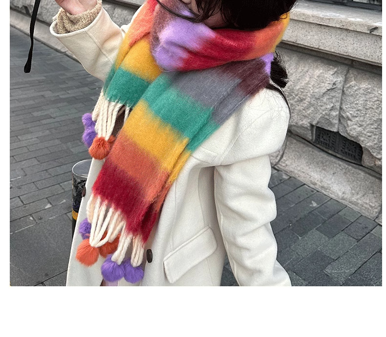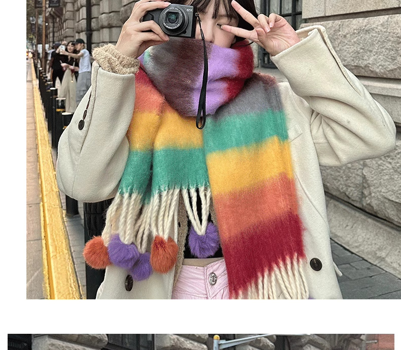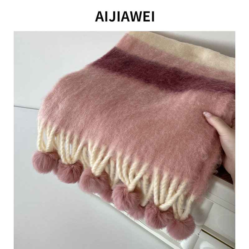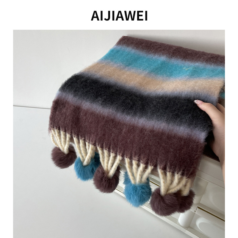 도파민 컬러 스트라이프 수제 모피 볼 따뜻한 스카프 여성의 겨울 새로운 한국 스타일 두꺼운 감기 방지 커플 스카프스토어 가기
