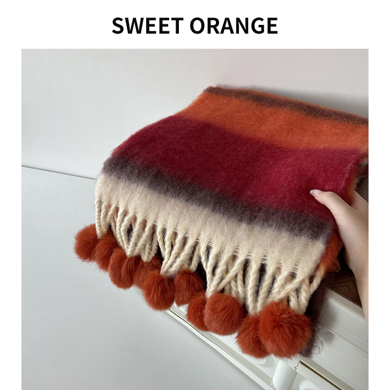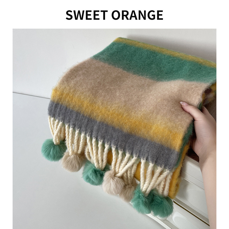 도파민 컬러 스트라이프 수제 모피 볼 따뜻한 스카프 여성의 겨울 새로운 한국 스타일 두꺼운 감기 방지 커플 스카프