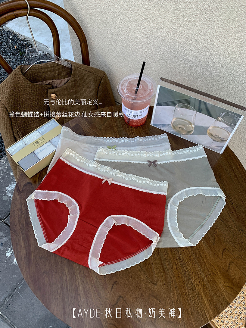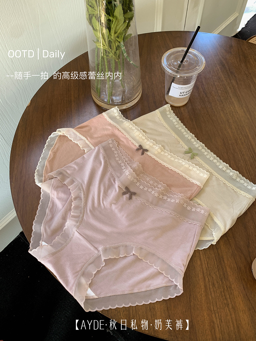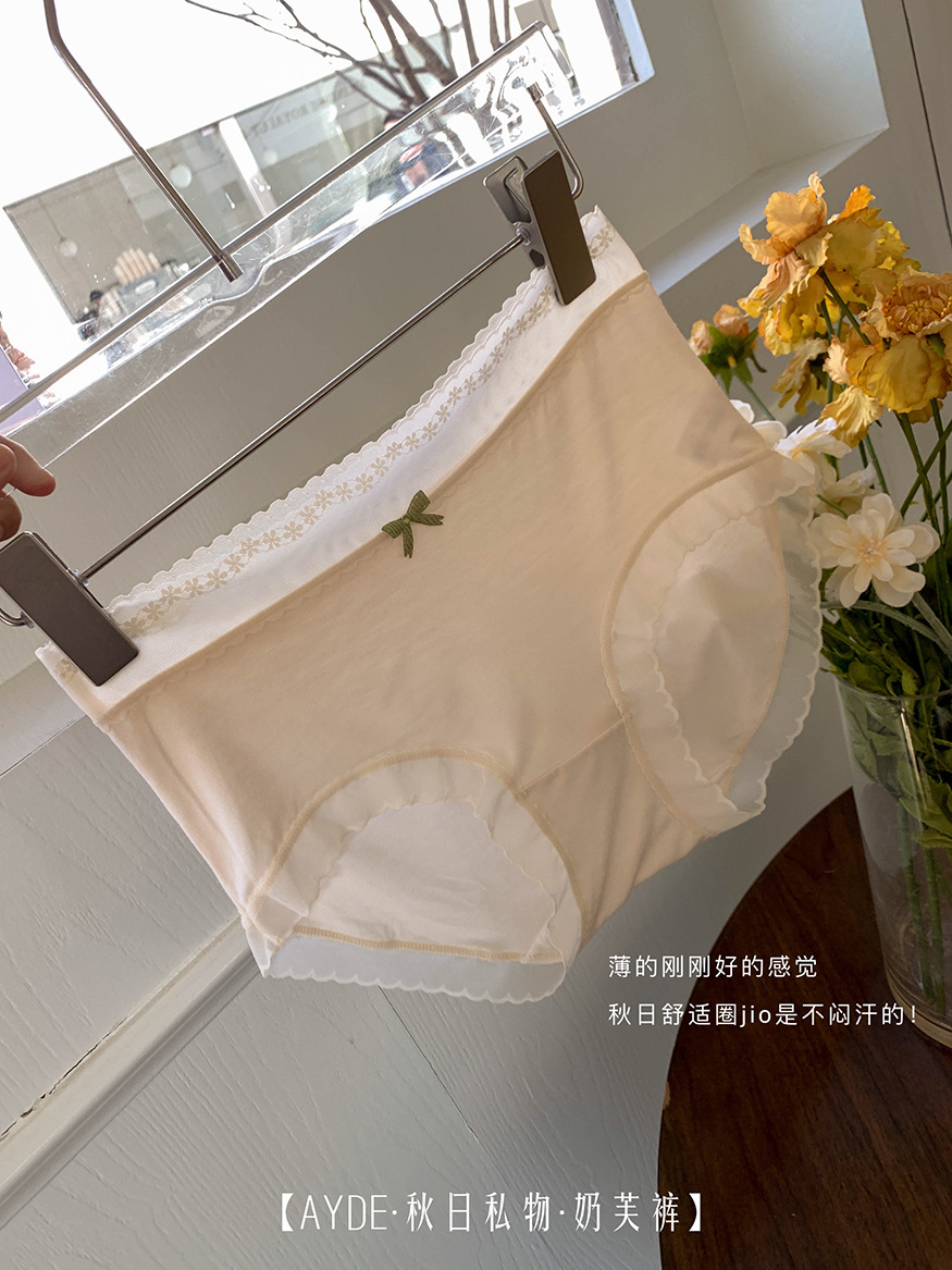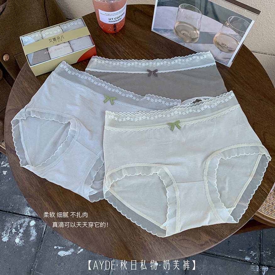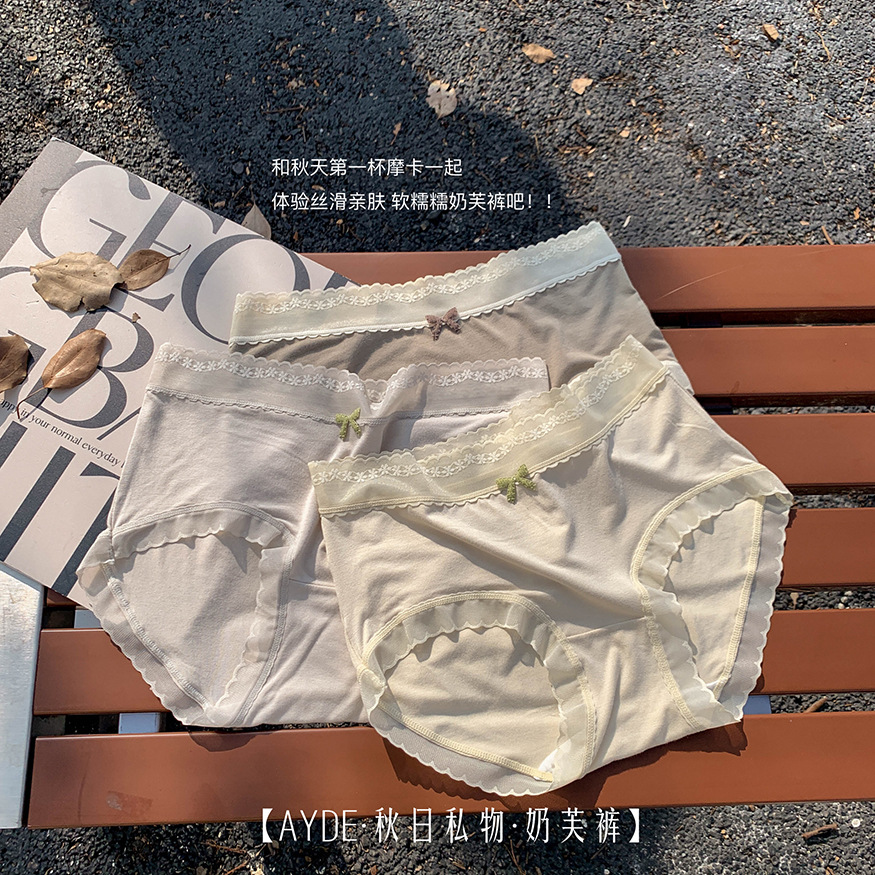가을과 겨울 새로운 중간 허리 엉덩이 팬티 여성용 알몸 피부 친화적 인 뽕나무 실크 7A 박테리아 성 여자 브리프 레이스