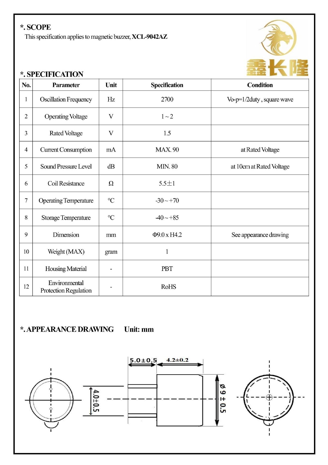 9042 전자식 버저 원형 핀 1.5V 통합형 패시브 5.5옴 소형 사이즈 알림기 도매