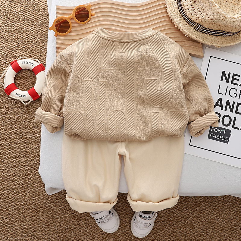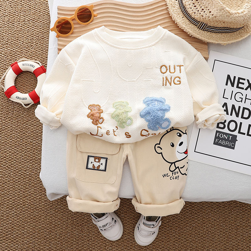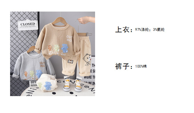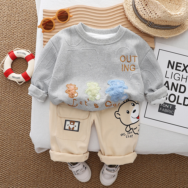 소년 가을 원피스 세트 2024 새로운 서양식 어린이 아기 봄과 가을 만화 크루 넥 스웨트 셔츠 캐주얼 투피스 세트스토어 가기