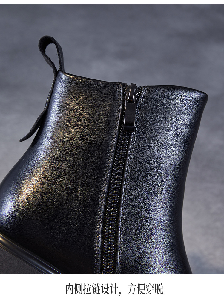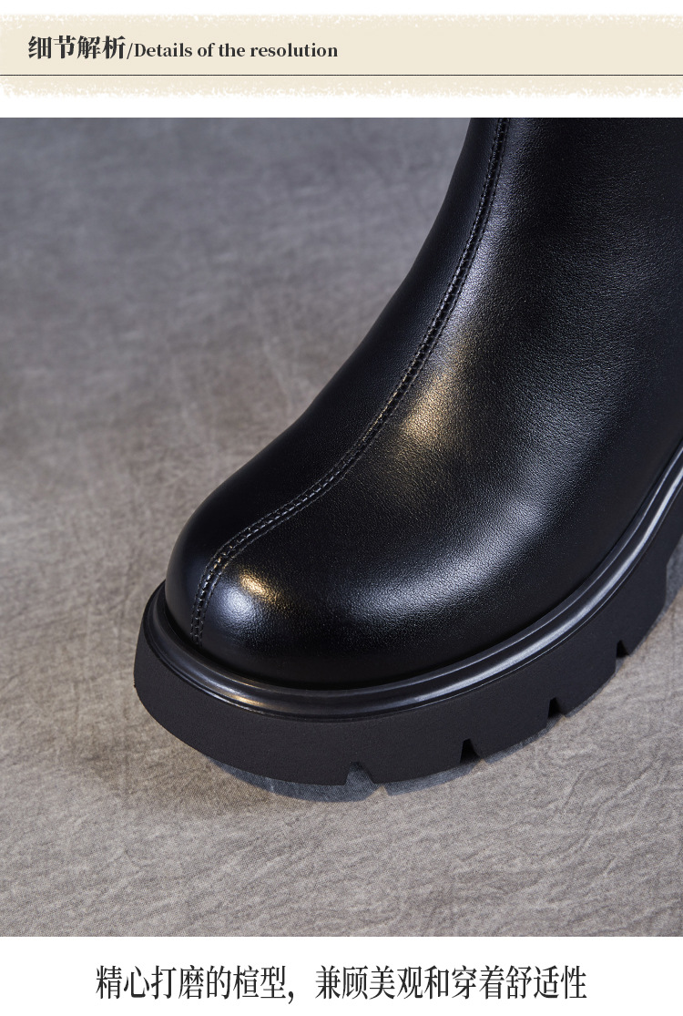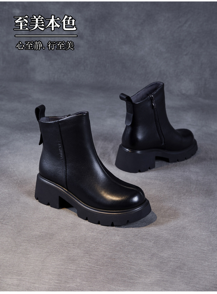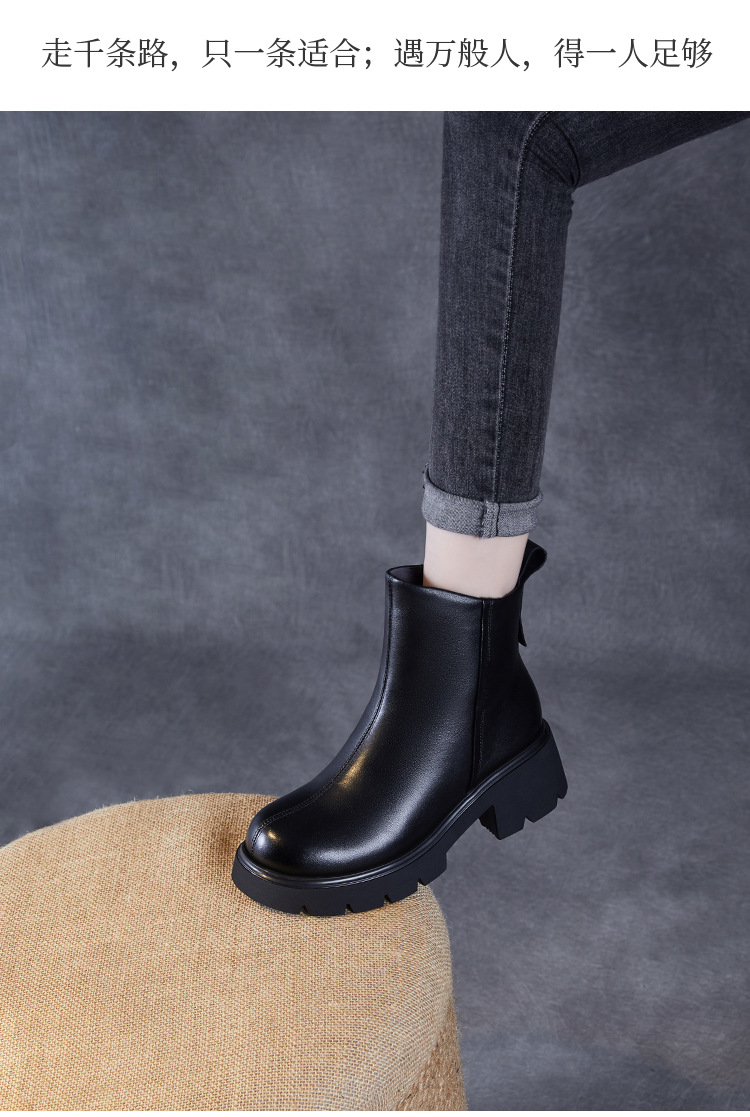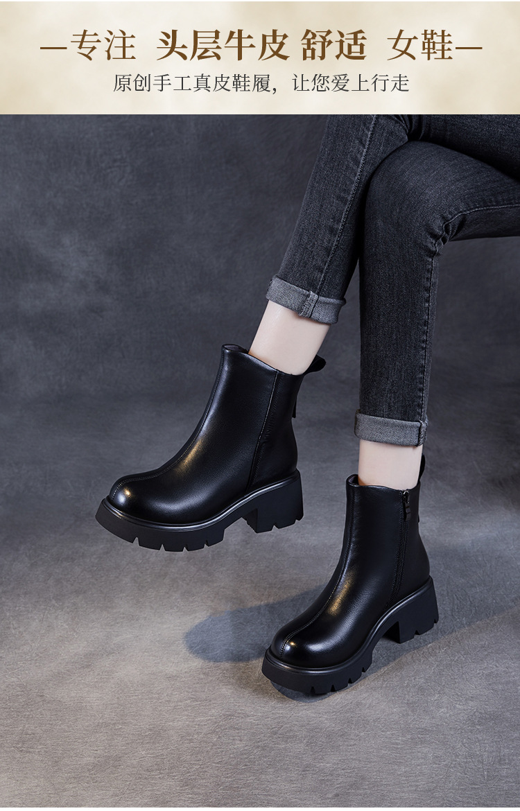2024 가을과 겨울 두꺼운 단일 중간 두꺼운 힐 탑 레이어 Cowhide 양모 라인 캐주얼 발목 부츠 여성의 동북 두꺼운 스노우 코튼 신발스토어 가기