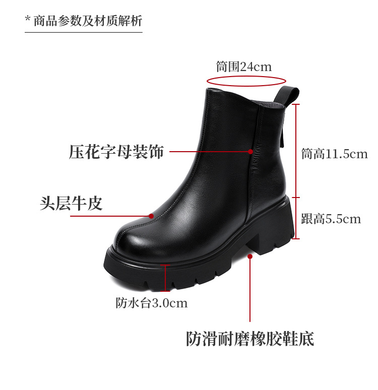 2024 가을과 겨울 두꺼운 단일 중간 두꺼운 힐 탑 레이어 Cowhide 양모 라인 캐주얼 발목 부츠 여성의 동북 두꺼운 스노우 코튼 신발